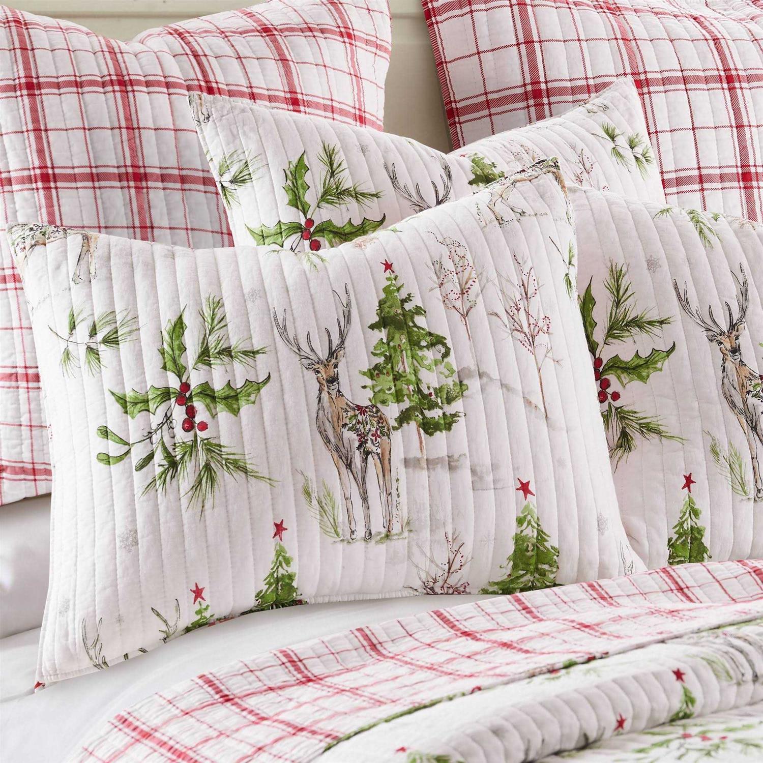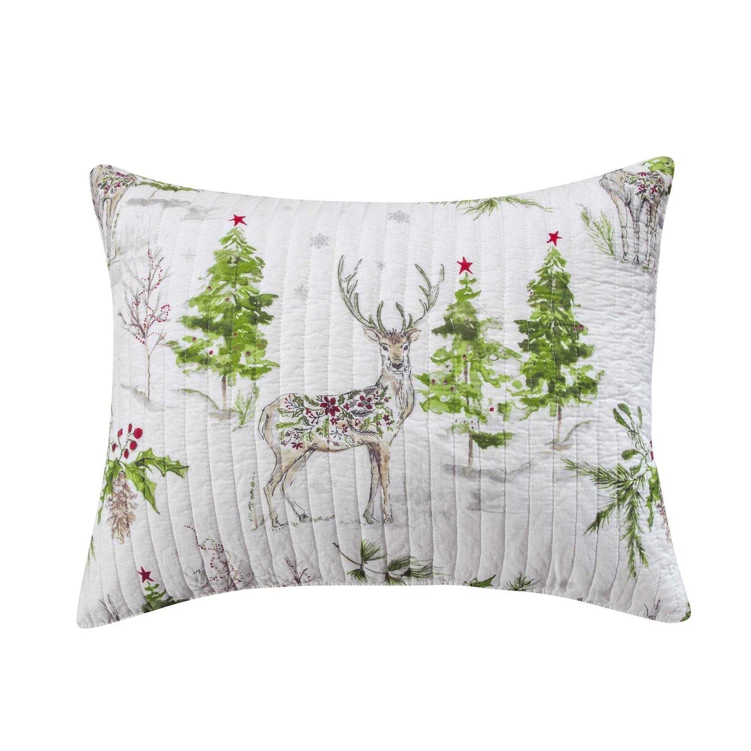 The Sleigh Bells Quilted King Sham by Villa Lugano for LEVTEX HOME is inspired by whimsical winter wonderlands. Offered in black, greys and white, this design will immediately transform your bedroom. This sham features deer, Christmas trees and holly in black and greys on a white ground in cotton on the front, reversing to a grey and white plaid in microfiber on the back. The King Sham (36 in. x 20 in.) is quilted with a cotton rich filler and is machine washable. Pillow inner not included. Enjoy this for years to come.