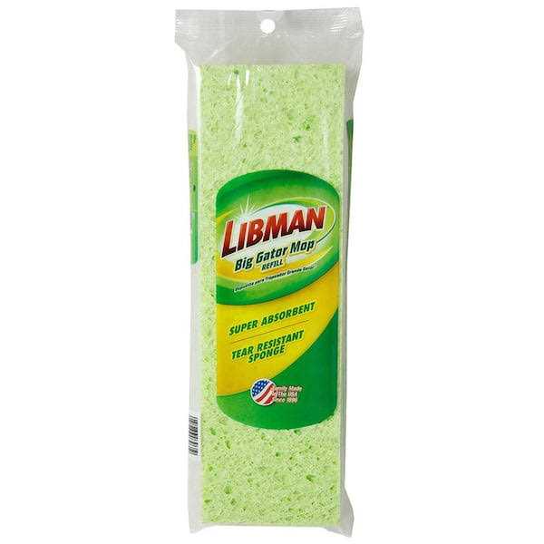 Refill for the Libman #3960 Big Gator Mop. This is a heavy-duty butterfly sponge mop refill. Extra absorbent cellulose sponge surface cleans and absorbs better than most sponge mops. Libman tear-resistant sponge mop head snaps onto frame with ease Fits Libman #3960 big gator mop Value bulk pack contains 6 sponge mop refill heads Sponge has cellulose surface with a synthetic sponge backing Strong, tear-resistant sponge Super simple sponge snaps into place without any fuss Bulk pack contains 6 replacement sponge mop heads Sponge is 11.25 in. W x 3.5 in. D x 1.38 in. thick Fits Libman #3960 big gator mop (home depot store sku #1001990628) The Libman Gator Mop with Brush Refill is perfect for residential usage. This gator mop comes with assembled dimension of 1.50 in. d x 4.75 in. w x 13 in. h. It is quick and convenient to change refill.