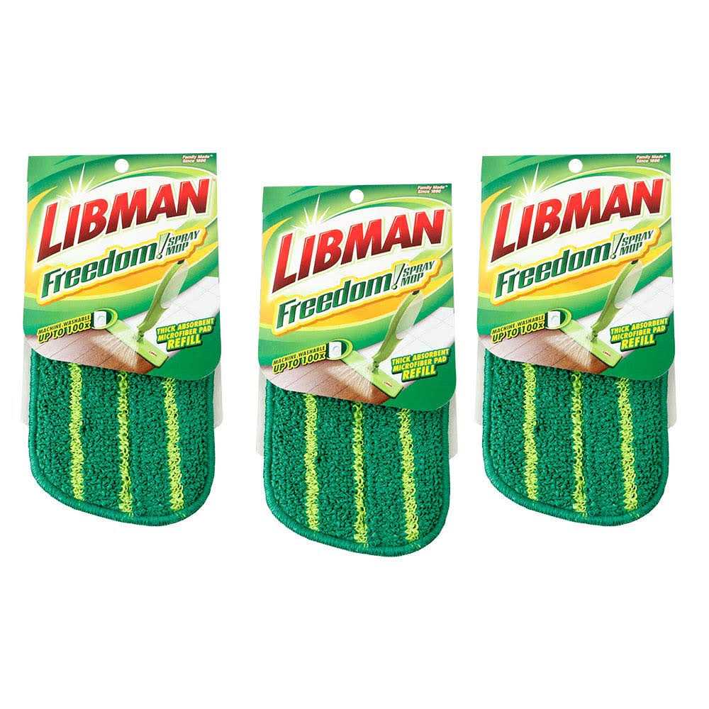 THREE MICROFIBER REFILLS: Kit includes 3 absorbent microfiber refills for the Libman Freedom Spray Mop.