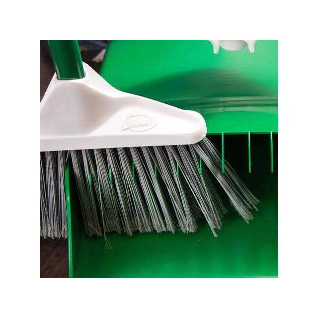 Tired of bending down to sweep up dust and debris in a dustpan; then use the Libman Lobby Broom and Dustpan set. It’s a professional-grade broom and dustpan that’s great for residential and commercial clean-up. The dustpan handle length is the same as the lobby broom, so you don’t have to bend over and strain your back to use it. For added convenience and storage, you can lay the pivoting dustpan flat on the floor. Or the broom and pan click lock closed for easy stand-up.