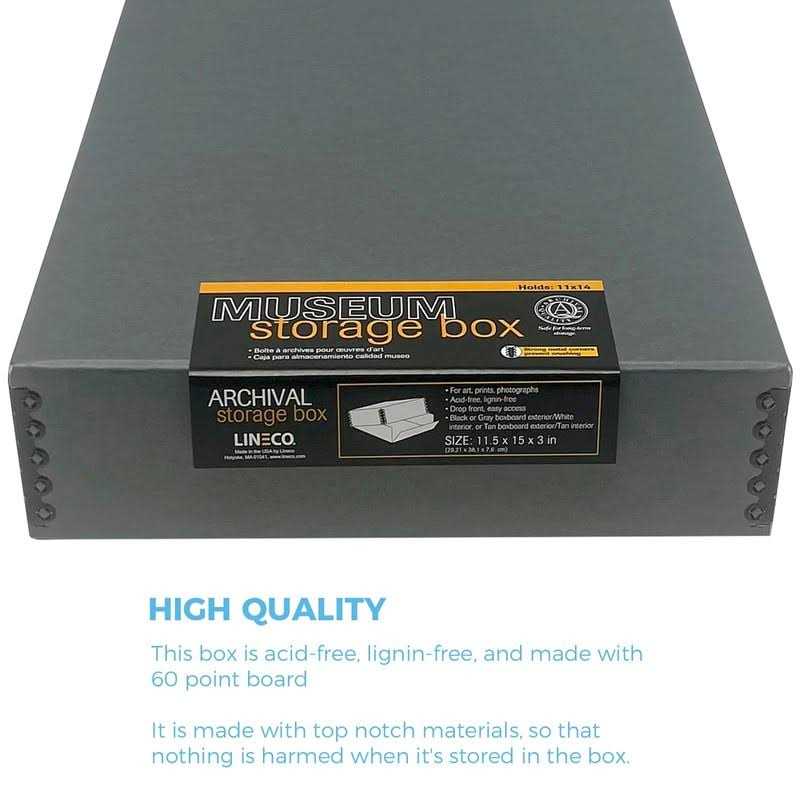 Lineco Archival 11×14″ Print Storage Box, Drop Front Design, Exterior Color: Blue / Gray.