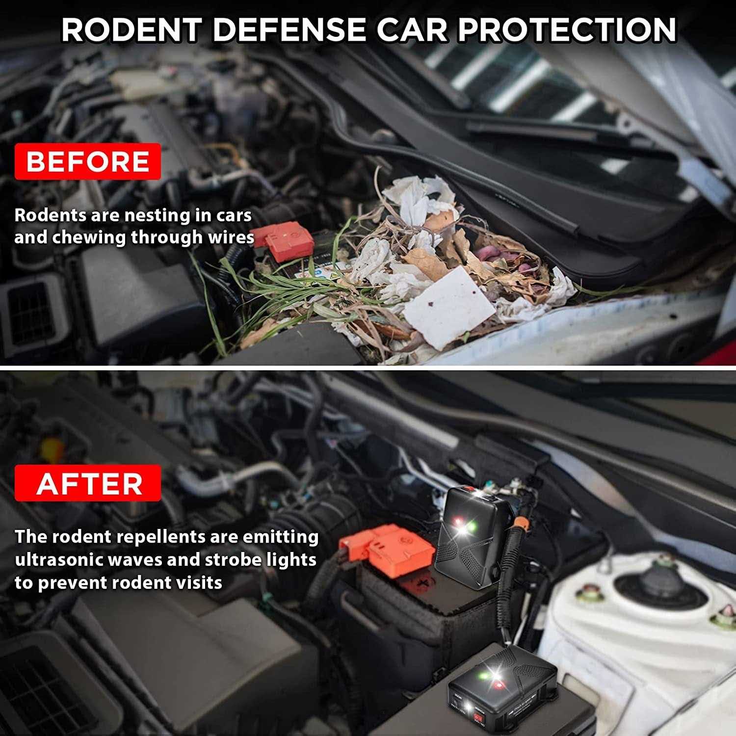 - Emits a combination of fluctuating ultrasound waves and dual LED strobe lights to deter rodents from entering your automobile.