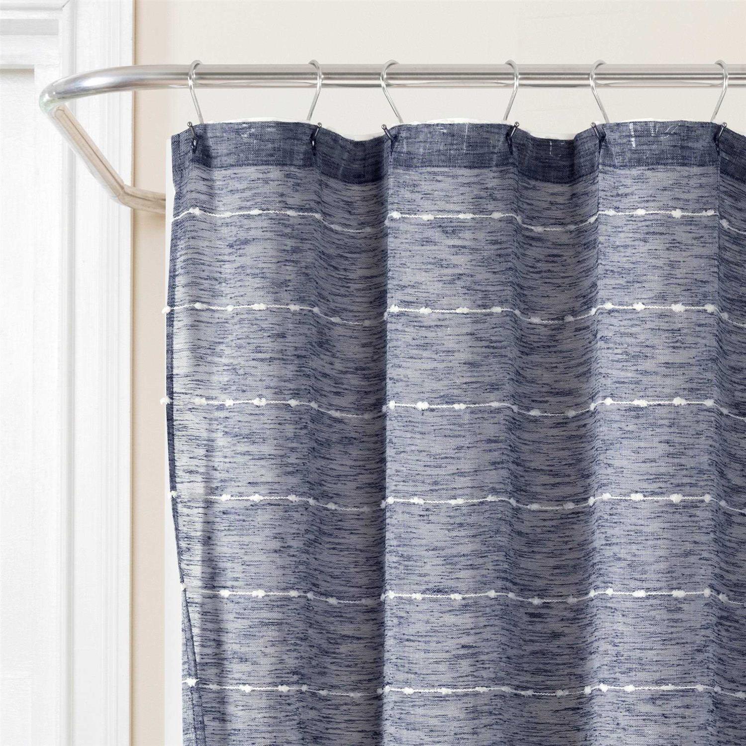 One of the best ways to complement the farmhouse style is with textured stripes. This lightweight sheer shower curtain upgrades classic stripes with its stylish tufting detail stretching from side to side. This two-piece set includes a PEVA liner. The design effect of this shower curtain is just as lovely as its textured stripe pattern. Your bathroom will feel spacious and light with this neutral decorative addition. This shower curtain is striped with soft tufts on a sheer background giving dimension within its simplicity. But dont worry about your privacy, because included with this shower curtain is an unattached white PEVA liner with 12 grommet holes. Each side of the curtain measures 72 inches. There are 12 buttonholes at the top of your curtain to hang with whatever decorative hooks you choose (sold separately). Please refer to the product label for full care instructions.