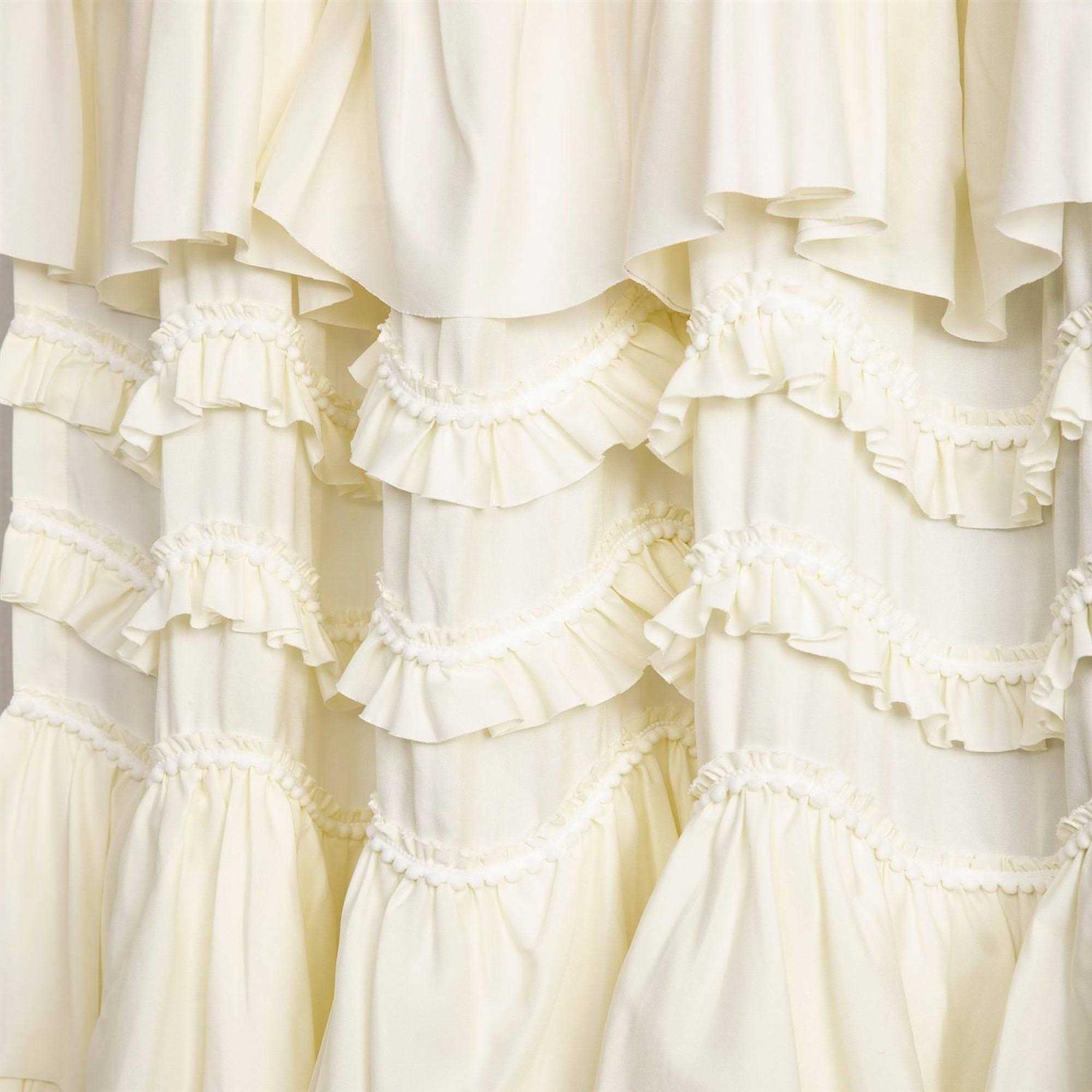 This window curtain set is the complete package: class, style, fun and beauty all in one. The layered ruffles in this design add dimension and texture to your space giving diversity to your decor. This curtain is sold by the panel. A great home decor tip you can use to shake things in your space is to add texture. This lovely curtain will do just that! These delicately layered ruffles are arranged in a unique pattern giving your bedroom an elegant touch. This curtain panel would be a wonderful addition to a nursery. This window curtain measures 52 inches across and hangs 63 inches down and is sold by the panel. It can easily be assembled by sliding a curtain rod through the three inch rod pocket. Please refer to label for full care instructions.
