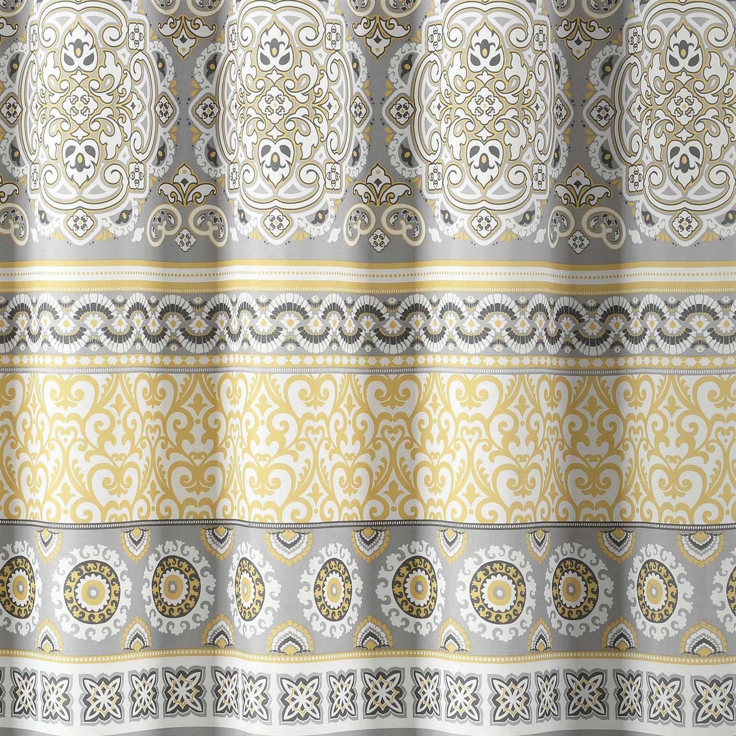 Add color and stylish decor to your bathroom with the Nesco Striped Shower Curtain by Lush Decor. Made of 100 percent polyester, it has a soft texture and works alongside a shower liner, which is available separately, to help keep water contained. This Lush Decor shower curtain features a lovely striped design that will enhance bathroom decor. Each stripe on this bathroom curtain has a different pattern with eye-catching and the warm colors come together in beautiful style. Along the top of the 72×72 shower curtain are a dozen buttonhole openings for the attachment of shower curtain rings, which are sold separately. It’s machine washable for convenient cleaning and care. The 72 inch x 72 inch measurements of this printed shower curtain allow it to fit standard size showers and tubs. Combine with other pieces from the Nesco Collection, which are available separately, for a coordinated look.