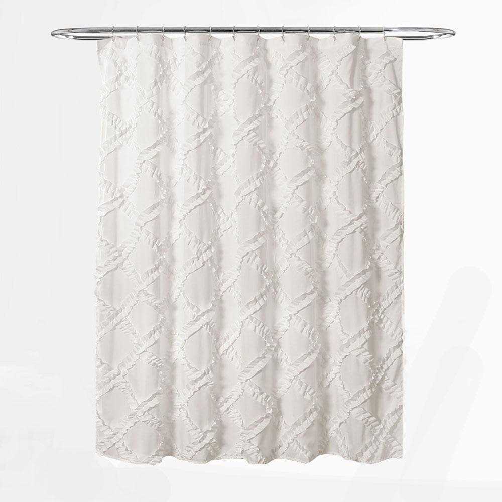 - Lush Décor Ruffle Diamond shower curtain is the ideal piece for your farmhouse style, shabby chic or vintage bathroom decor.