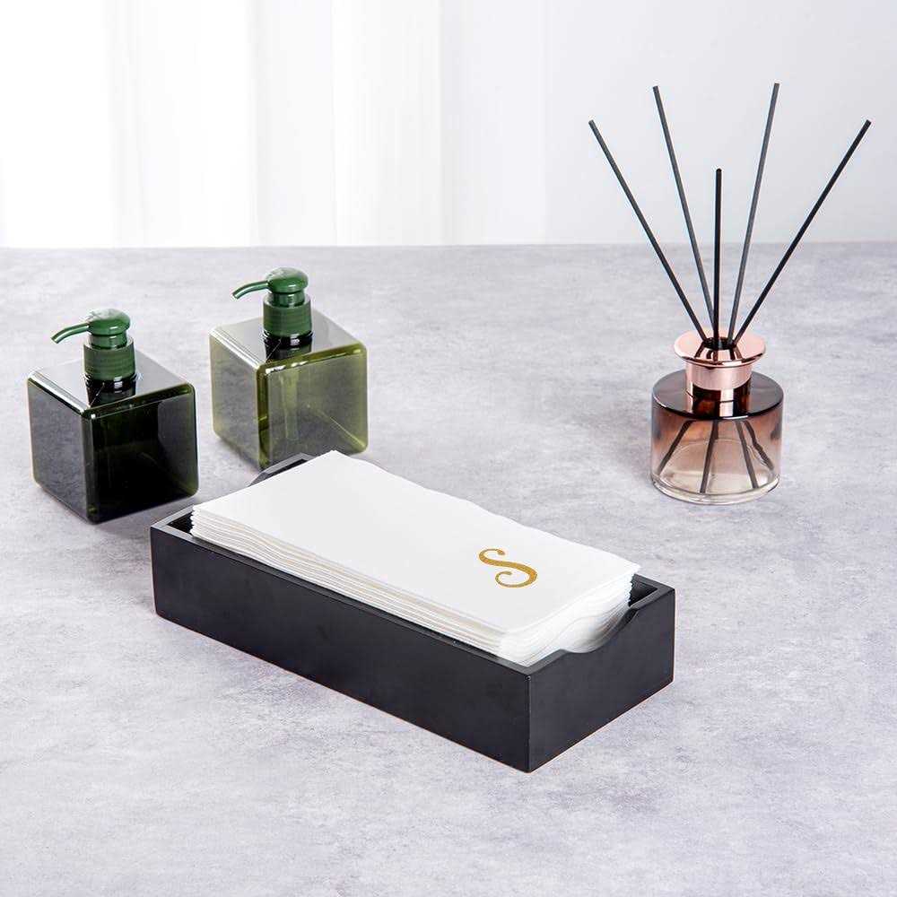 Restaurantware Luxenap Rectangle Gold Letter S White Paper Napkin – Air Laid, Cursive Font – 15 3/4″ x 8″ – 50 Count Box