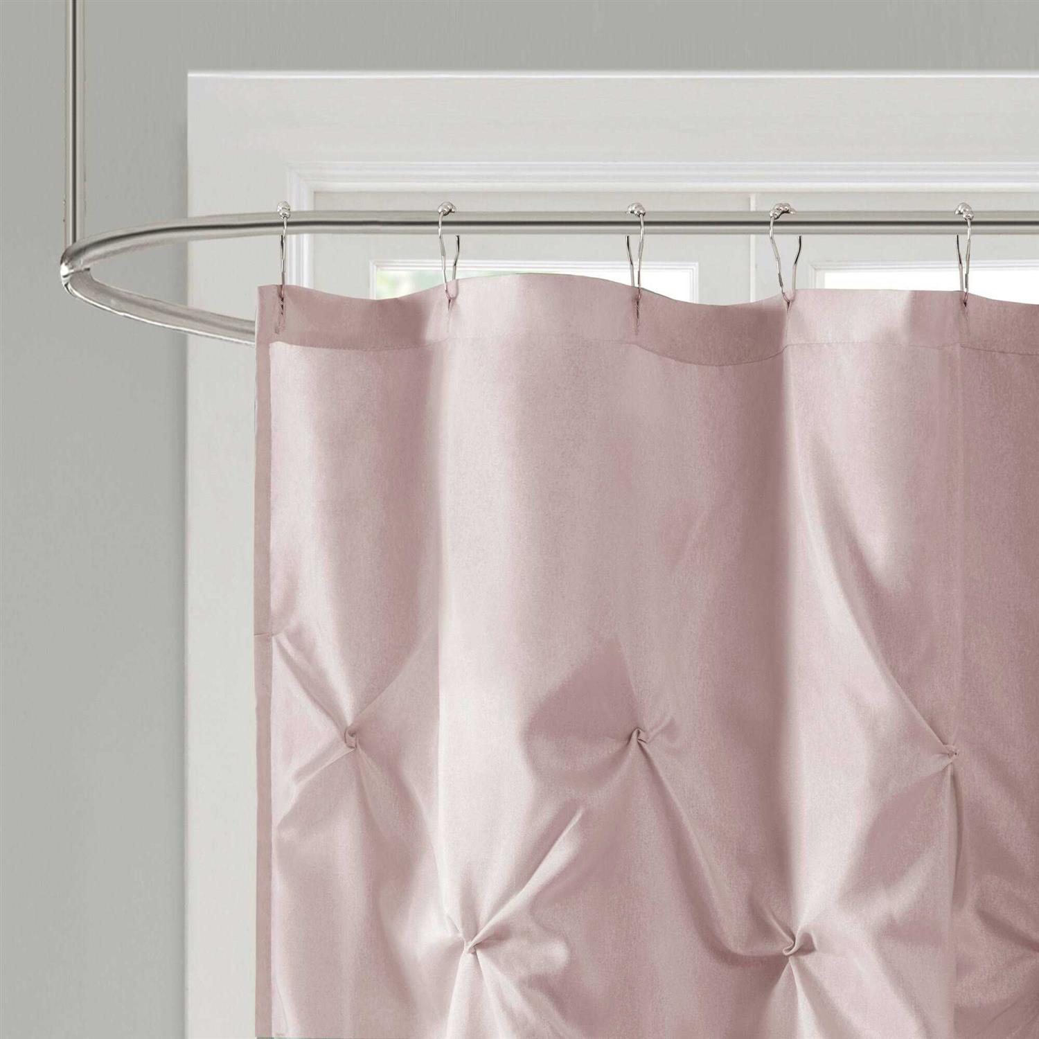 Transform your bathroom into a sleek spa retreat with this Tufted Faux Silk Shower Curtain. The soft black color paired with the large tufting creates a contemporary look while adding texture to give your washroom space an elegant look. Elevate your master or guest bath decor with this semi-sheer lightweight shower curtain.