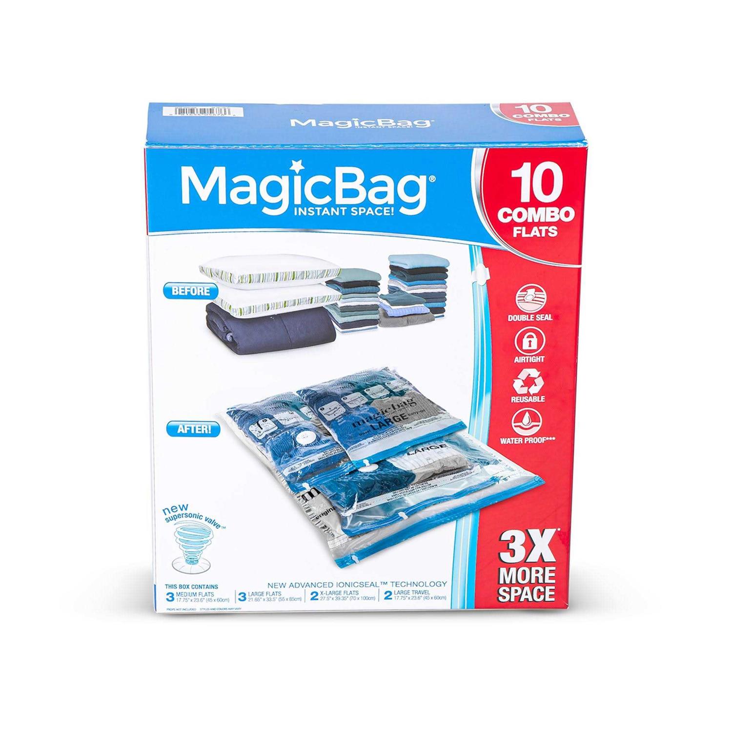 Triple Your Storage Space With This Value Pack Of Ten Vaccum Compression Bags. This Set Of 10 Includes: 3 Flat Medium, 3 Flat Large, 2 Flat Xl And 2 Travel Large. The Airtight One Way Valve With Universal Diameter Valve Fits Almost All Vacuum Hoses. These Bags Will Protect Against Dirt, Odor, Insects, And Mildew. Product Features: Lab Tested & Proven To Stay Airtight Airtight One-way Valve Fits Almost All Vacuum Hoses Rounded Double Zipper Protects Against Dirt, Odor, Insects.