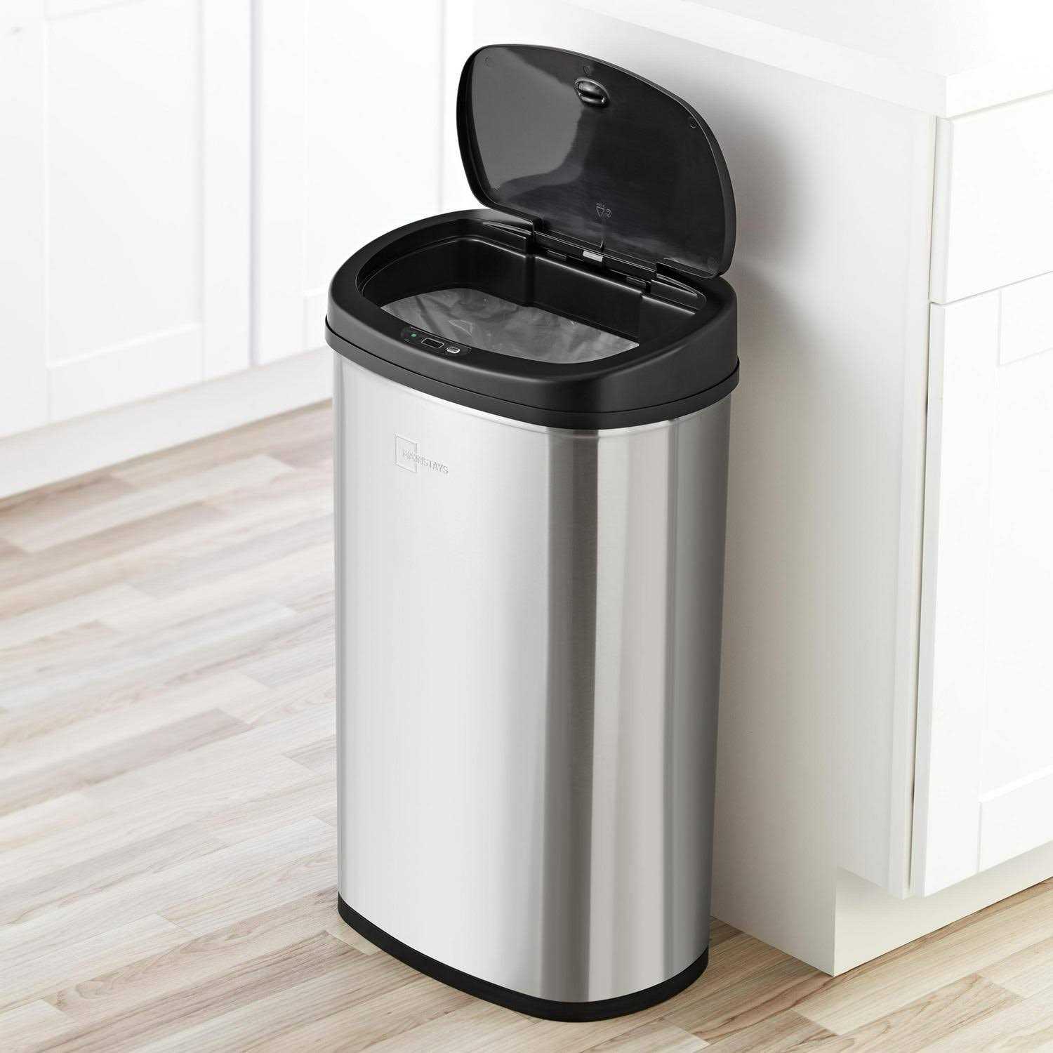 The Mainstays stainless steel motion sensor trash can is perfect for large families or busy environments. For improved cleanliness and hygiene, this trash can operates with infrared motion sensor technology to allow you to simply wave your hand above the sensor at the front of the lid to open it automatically. The lid will remain open as long as there is an object in front of the sensor, and close gently five seconds after the object is removed. If a hand or object breaks the infrared beam between the lid and the sensor while it’s closing, re-triggering technology opens the lid again to prevent the lid from closing on your hand. Perfectly sized to accommodate any standard 13-gallon trash can liner.