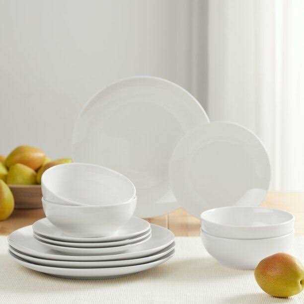 Add a touch of simple elegance to your table setting with this Mainstays White Dinnerware Set. It includes four bowls, dinner plates and salad plates, all with the beautiful white porcelain look, to add to your dinnerware collection. Made of dishwasher- and microwave-safe stoneware, this set is suitable for daily use for any and all of your meals. This durable stoneware set is easy to care for and will hold up to years of use while looking great on your table. Whether its a night in enjoying dinner with the family or a household event with guests, versatility is found in your dinnerware style with the Mainstays White Dinnerware Set.