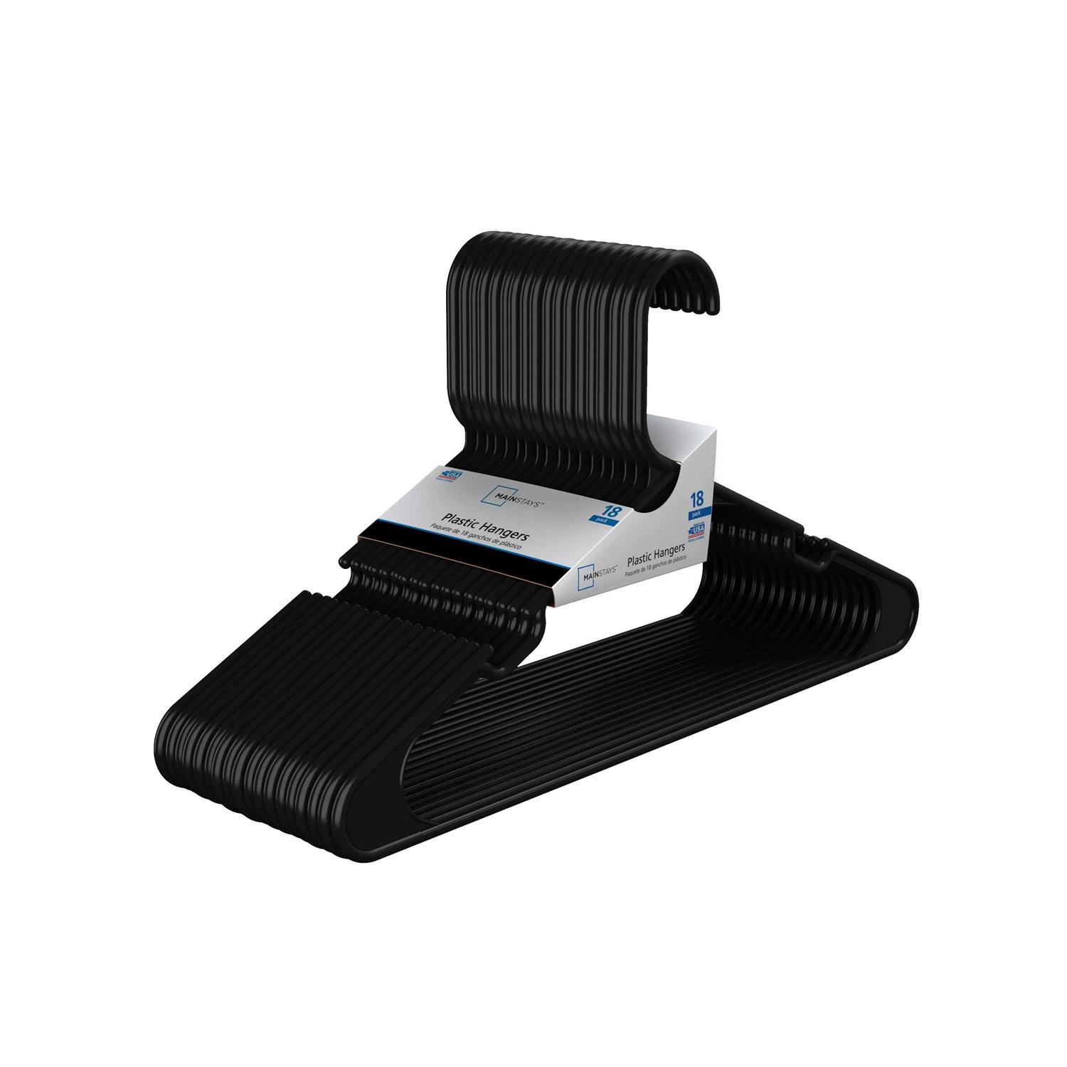 Mainstays Clothing Hangers, 18 Pack, Black, Durable Plastic