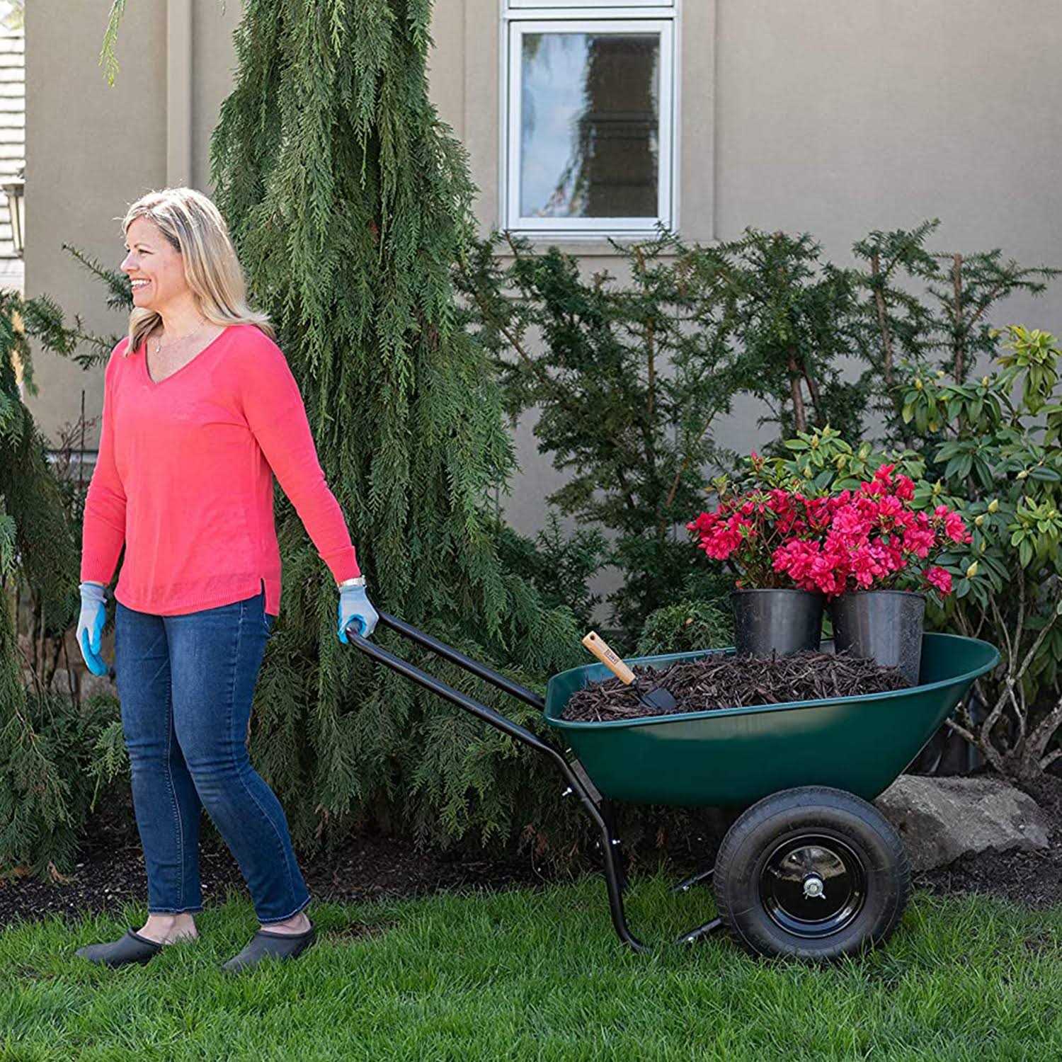 Master your yard one load at a time. With the Marathon Yard Rover 2 Wheeled Garden Cart you can move rocks, gravel, dirt, and mulch to help bring your garden to life. This utility cart has a durable plastic, 5-cubic foot tray attached to 2 pneumatic rubber tires. The 300-pound weight capacity and balanced design make this wheelbarrow easy to lift and maneuver around the garden, lawn, barn, or farm. Thanks to the rugged set of treaded tires, this car is suited to haul difficult loads on most terrain. The loop handle provides full control over pushing, pulling, and dumping so you can get the job done without throwing out your back. Get up in running quickly with easy, straightforward assembly so you can focus on the projects you’ve got planned. Built with strong polypropylene material, this garden cart is built to last through even the toughest loads. Keeping your lawn and garden in beautiful shape doesn’t require hours of backbreaking work. Use the Marathon Yard Rover 2 Wheeled Garden Cart to cut down on your time and effort so you can focus on what’s important to you this summer.