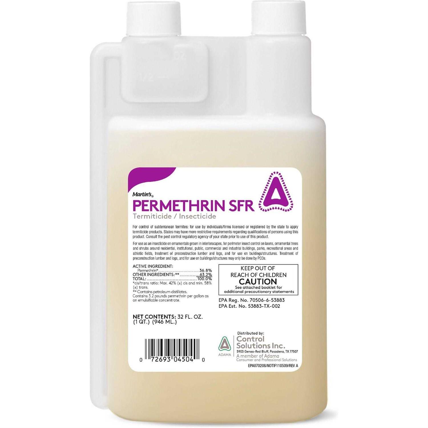 Permethrin SFR concentrate qt. is a professional strength termiticide and insecticide labeled for both pre-and post-contruction use. It is also labeled for use on lawns landscapes ornamentals around homes and barns for a very broad-spectrum of insects. Permethrin SFR is even safe for use in poultry houses and on listed animals for specific pests.