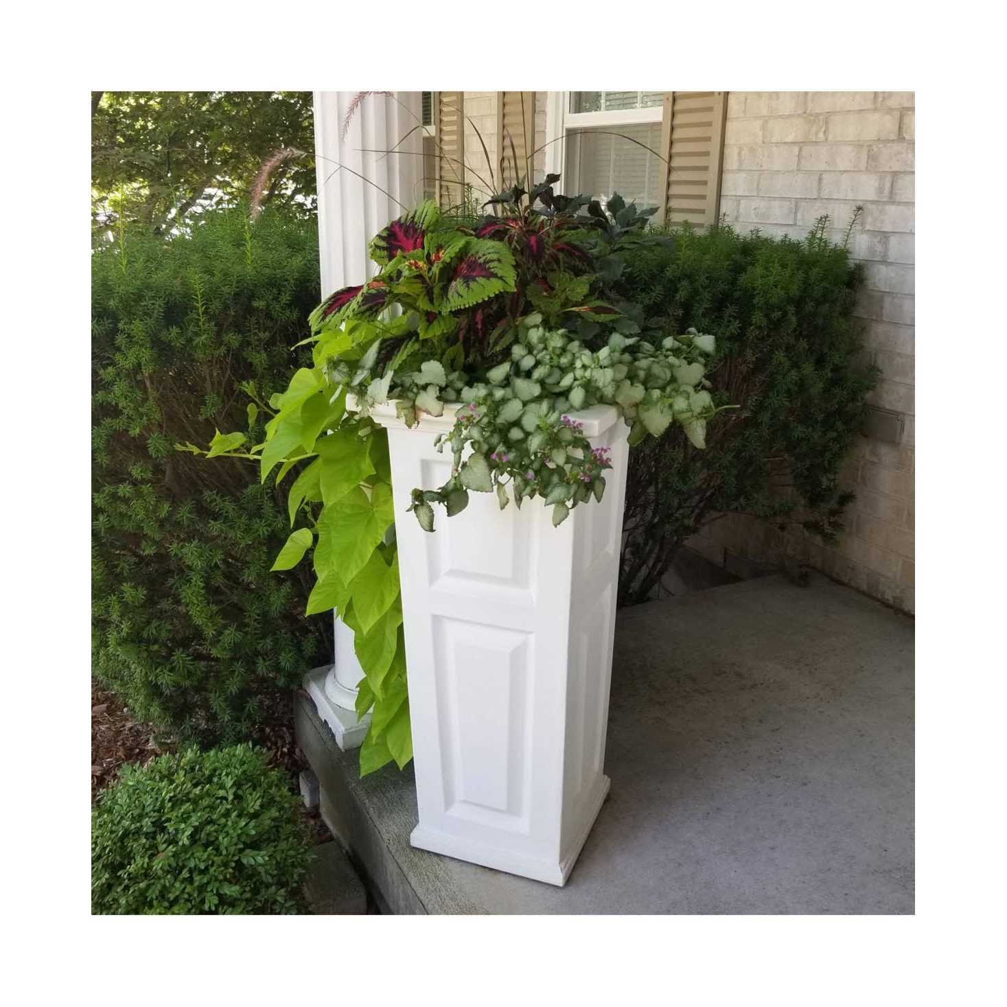 Style and functionality come together perfectly with the Nantucket Tall Planter by Mayne, creating an elegant finishing touch to any patio or entrance way. Single wall molded design, with self watering tray insert that creates sub-irrigation water system and encourages root growth. The tray can be reversed to support a potted plant or removed so the planter can be completely filled with soil. Drainage holes to be pre-drilled by customer depending on desired use of the planter. Approximately 10 gallon soil capacity, water capacity is approximately 6.5 gallons (24 liters). The weather-proof and ultra-tough construction allows you to enjoy your planter all year long with very little winter preparation. The UV inhibitors within the resin allows for a long lasting fade-free performance.
