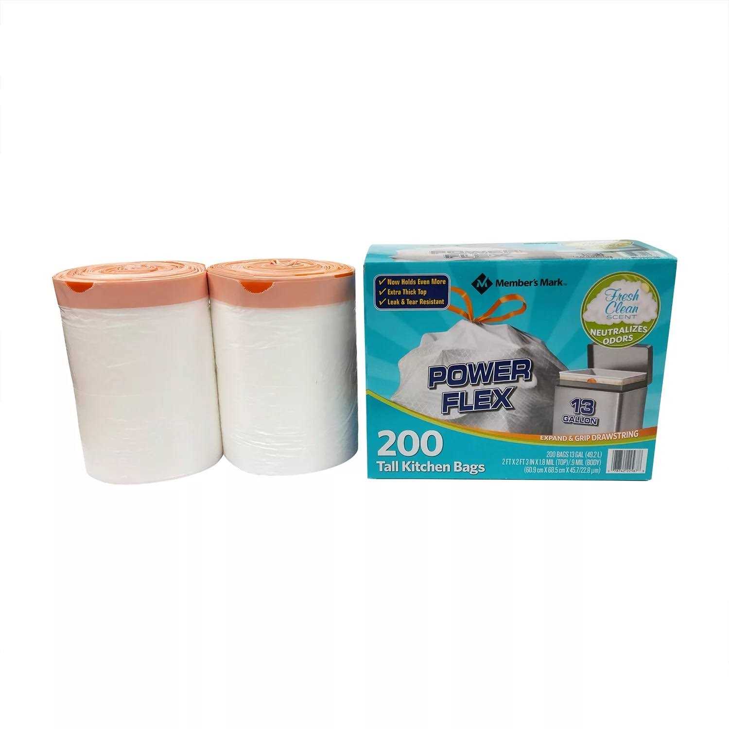Member’s Mark Power Flex Tall Kitchen Drawstring Trash Bags (13 gal., 200 Ct.)