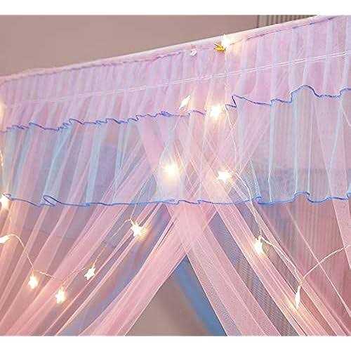 Mengersi Rainbow Canopy Bed Curtains with Lights – Princess Bed Canopy for Girls – Bed Drapes Netting- Bedroom Decoration Accessories King