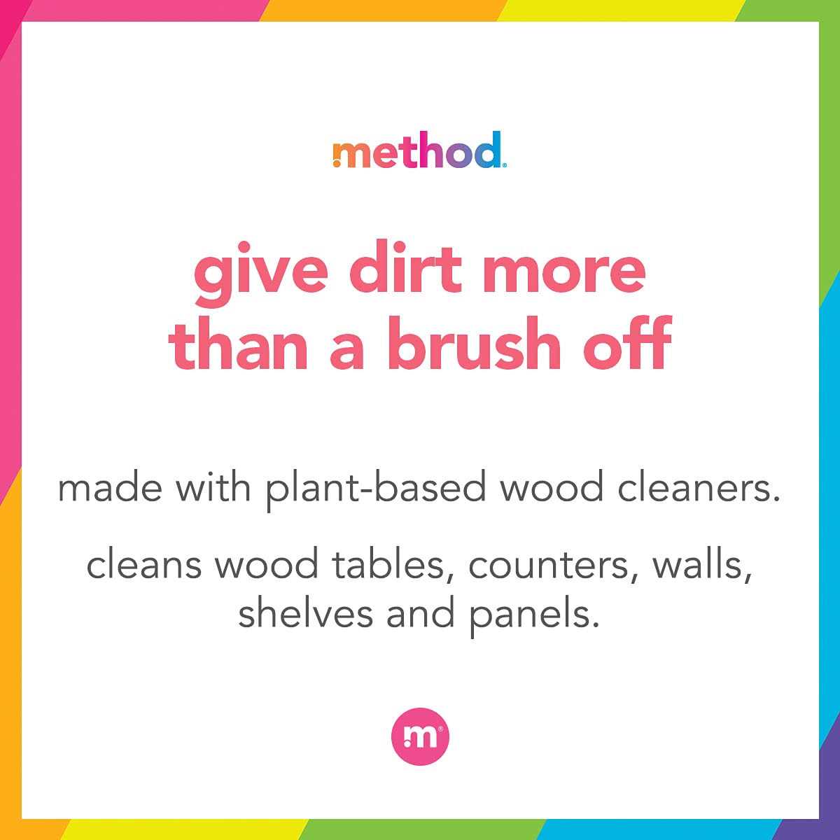 Special surfaces deserve special treatment. This non-toxic, plant-based cleaner safely eliminates dust, crumbs, and more from wood surfaces. Plus, the no-wax formula gently polishes and conditions without leaving a hazy residue. It’s perfect for everyday cleanup on dining tables and wooden kitchen surfaces. What’s That Smell? Method believes clean smells like almond – rich, nutty, and good with chocolate. In a world where cleaning products often smell at best, bland and boring, and at worst, noxious and offensive, Method takes pride in making products that smell great. Founded in 2000, Method creates premium and design-driven home, fabric, and personal care products. Formulated with naturally derived, biodegradable ingredients, Method cleaners put the hurt on dirt. Method is headquartered in San Francisco, CA.