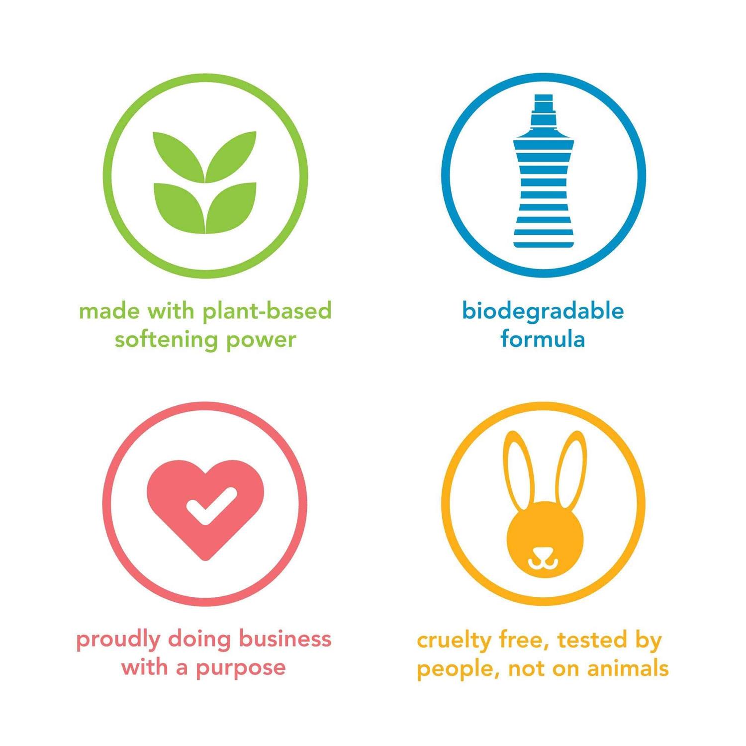 Contains (1) 53.5 ounce bottle of liquid fabric softener Made with plant-based softening power. For both HE and standard washers. Leaves laundry freshly scented, soft and fluffy. Reduces static cling, makes ironing easier. Cruelty free. Tested by people, not on animals. The Fresh Air fragrance is breezy and refreshing you know, like a breath of fresh air. Proudly doing business with a purpose. Feels soft, smells good. That about sums up what will happen to your clothes when you use our freshly scented fabric softener. Made with plant-based softening power, our formula reduces static cling while making clothes and linens soft enough to cuddle. Because even your clothes need a little tlc.