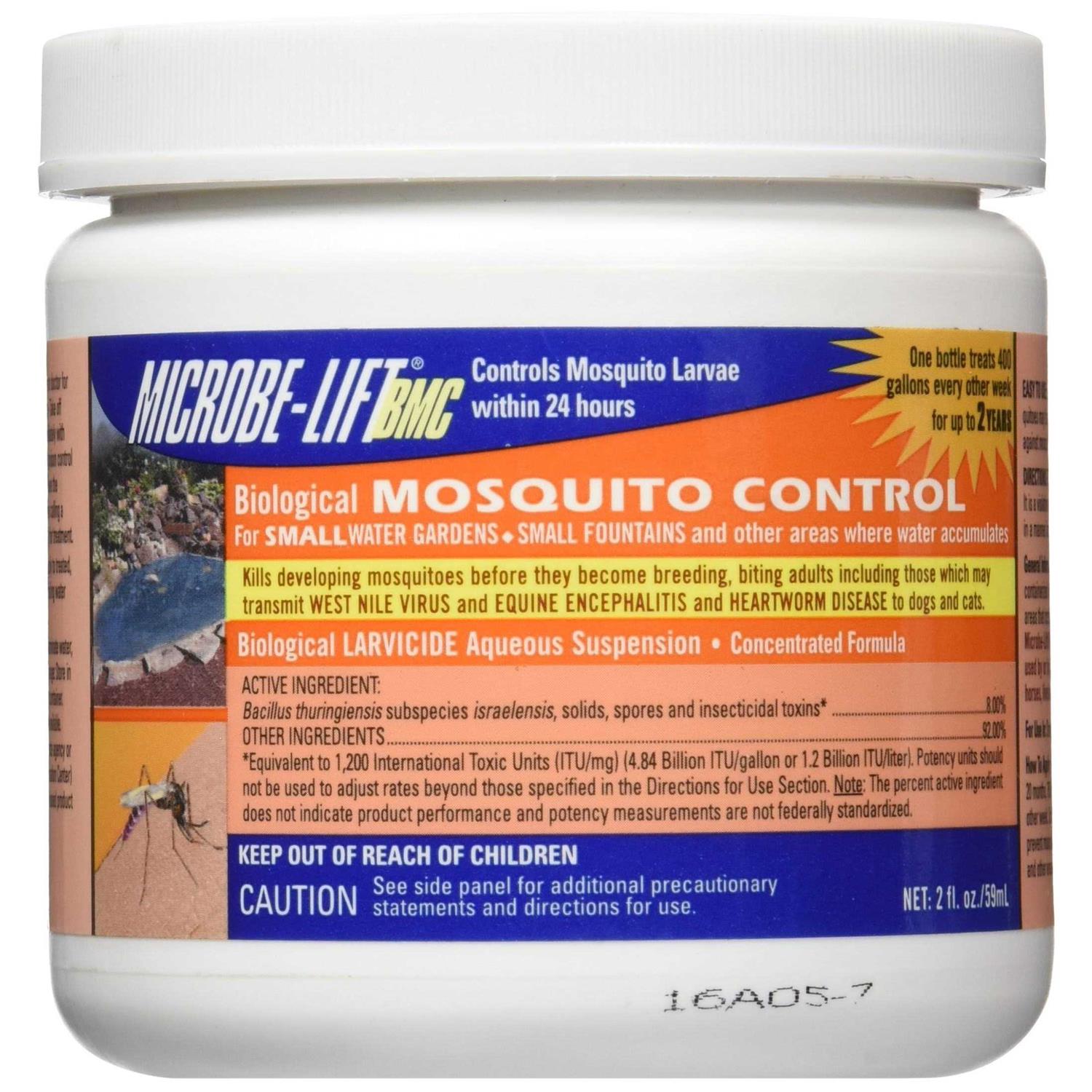 Microbe Life Microbe-Lift BMC (Biological Mosquito Control) fully treats any area with standing water that serves as a breeding ground for mosquitos. It consists of natural bacteria that are toxic to mosquito larva, killing mosquito populations at their source. Because these bacteria are only toxic to the target pest, they pose no danger to fish, pets, humans, or vegetation. It fully penetrates the entire depth of the water treated, and it has no negative effects on the aesthetics of the areas in which its used. One teaspoon treats 540 square feet of water. This biological formula can also be used in a soil drench dilution to control the soil-dwelling larvae of certain plant pests such as fungus gnats.