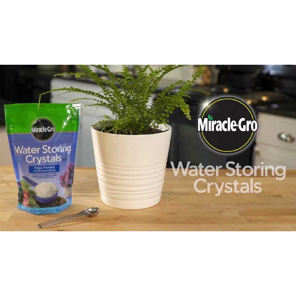 Helps prevent over and under watering Reduces water stress in plants to help protect them from heat and drought Ideal for indoor and outdoor plants Mix with soil to reduce amount of watering needed Crystals swell to absorb water and release later Size:12 oz Help prevent over and under watering of plants with Miracle Gro Water Storing Crystals. Ideal for indoor and outdoor plants, the crystals reduce water stress in plants to help protect them from heat and drought.Simply mix with soil to reduce the amount of watering needed; then when you do water plants, crystals will swell to absorb the water. Your plants will receive the right amount of water they need to thrive.