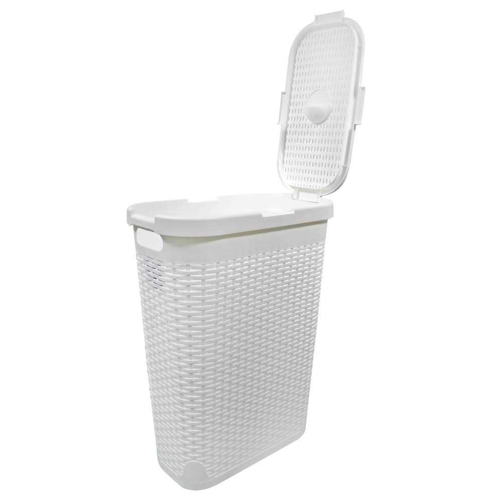 Contemporary and durable, this Modern Homes 40 L Laundry Hamper is the perfect laundry storage solution. It will suit any bathroom as it has a decorative rattan design and practical 40 L/10.56 Gal. capacity. Easy to clean, it will not rust or dent. Made of high-quality plastic for durable use Decorative rattan design adds visual appeal Helps to keep the laundry in an organized manner Durable Easy to clean Size: 18.3 in. x 10.4 in. x 23.8 in. (46.4 cm x 26.5 cm x 60.5 cm) Color: white Split up your laundry by darks and lights, or separate delicates from normal loads with Modern Homes Modern Homes Laundry Hamper White.