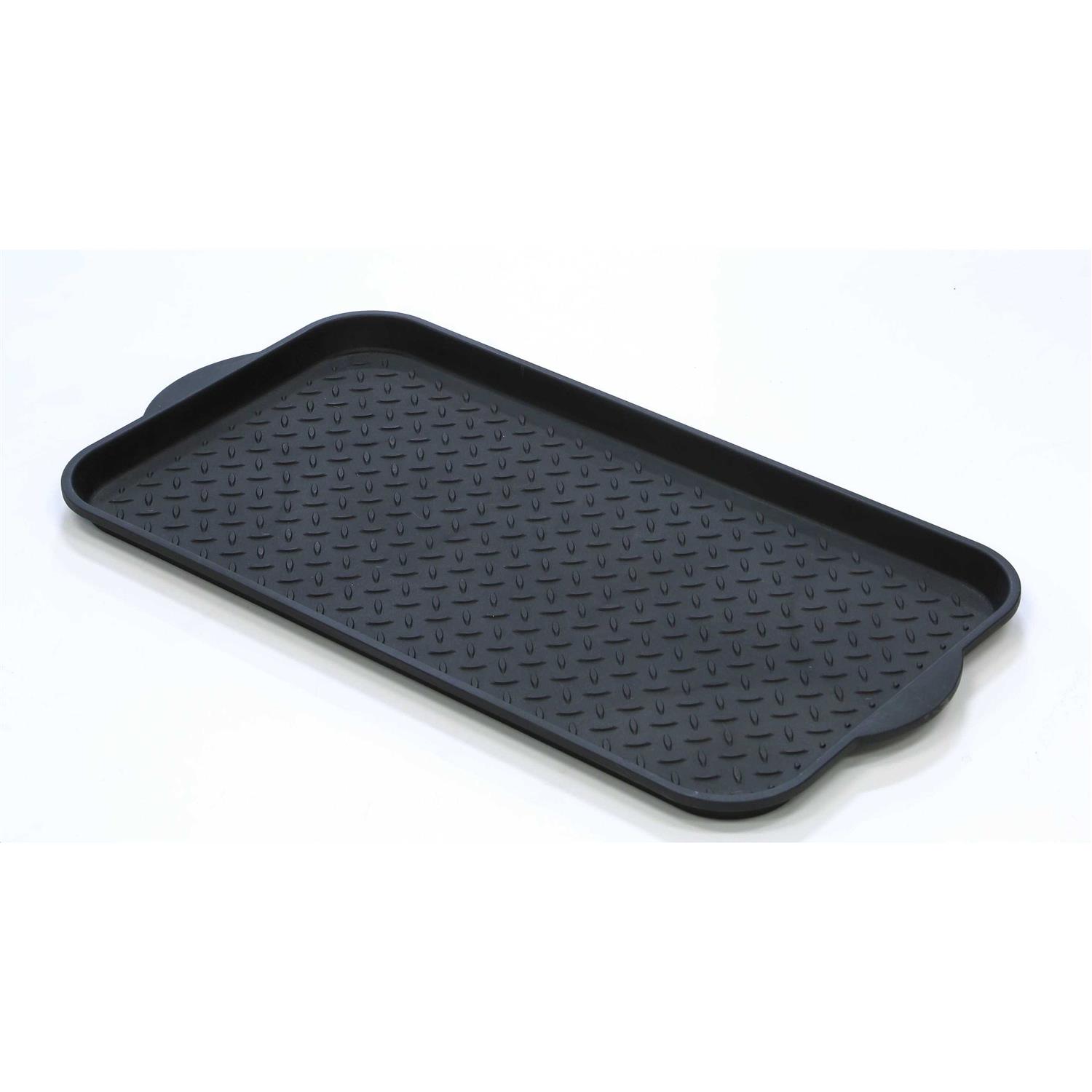 Mohawk Home’s Diamond Rectangular Boot Tray is essential for any busy household! Ideal for mudrooms, garages or foyers to collect shoes, this boot tray can help keep your inside floors clean from outside dirt and debris tracked inside on the soles of footwear. In addition to collecting shoes, the boot tray can also help keep flooring beneath pet food and water bowls dry or provide a storage solution outdoor equipment. The possibilities are endless with this durable polypropylene tray. Simply wipe clean or spray with a hose as needed and allow to air dry. + 15 X 29 + Imported from China