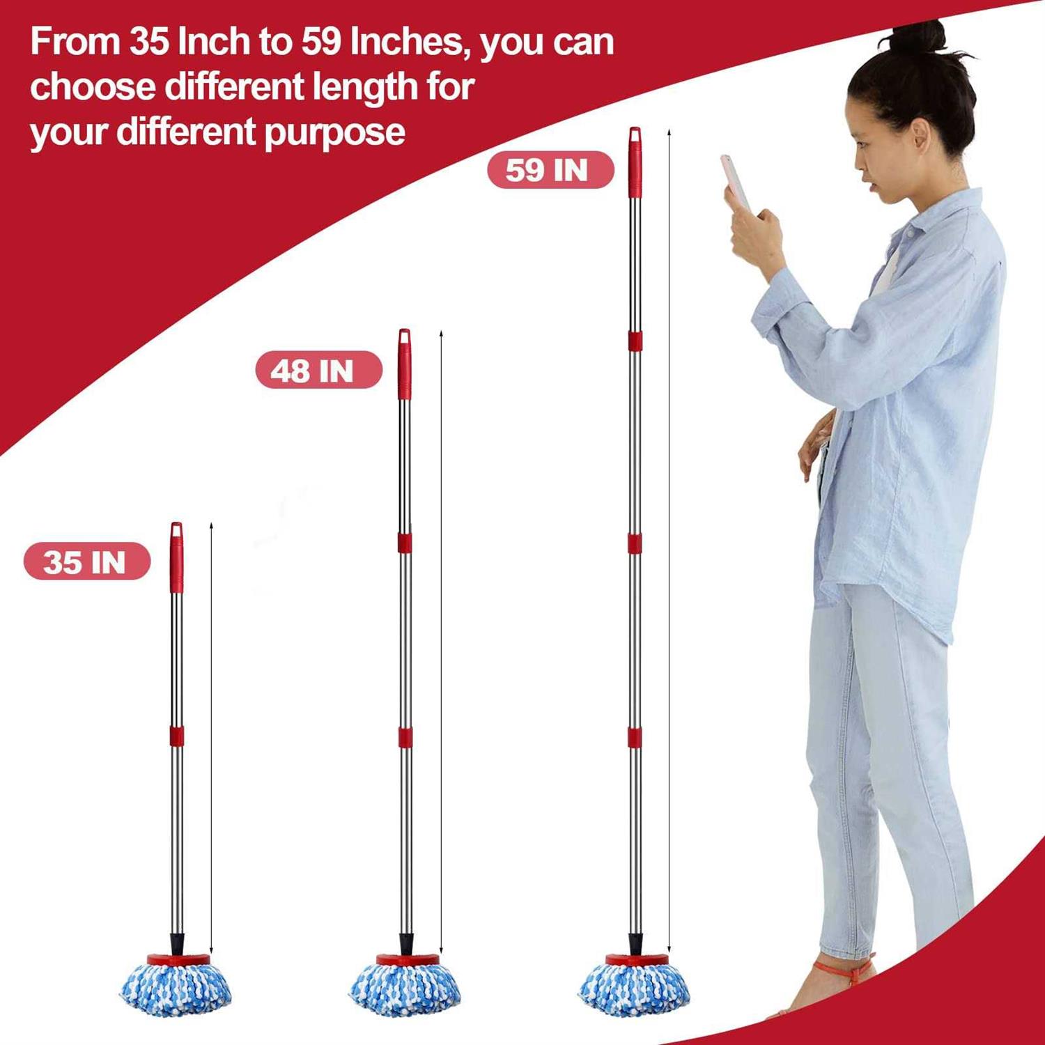 【Premium Quality】The spin mop handle replacement is made with Premiun lightweight stainless steel, which is durable, sturdy and last a long time. Build in a hanging hole in the top of the mop handle for easy to storage after mopping your house. Note: Not include Mop Heads & Mop head Base. 【American Threaded End】 This mop replace handle is compatible with most Spin mop and brooms, such as O-Cedar Spin Mop EasyWring & RinseClean Spin Mop, O Cedar floor Mop, Brooms & Brushes. It can also work with most other spin mop and brooms which with American Threaded Joint. 【Longer Than Original】You can combine these 4 sections of this mop or broom stick freely from 35 Inch to 59 Inch length, so that you don’t need to bend over to mop the floor. Bend over to mop is hard working. With the longest length, you can reach and clean your ceiling, cleaning house become much easier. 【Easy Installation】 You can install this mop/ broom handle with with several simple screw, very easy. 【Package included】 4 sections of Mop replace Handle in the package.