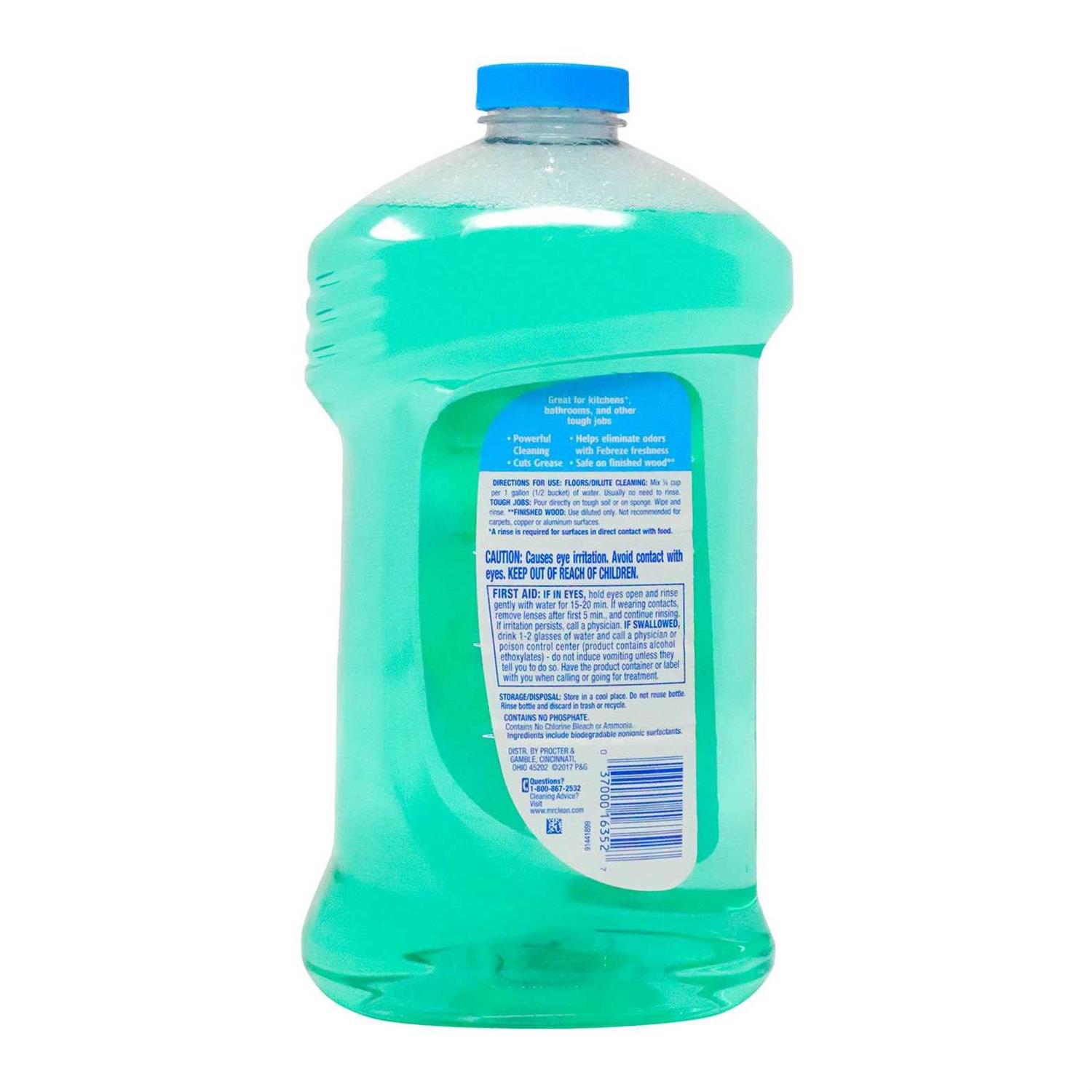 Clean Multi-Surfaces Liquid Cleaner with Febreze Freshness cuts grease, removes grime and leaves the light, fresh scent of Febreze as you go. Use it to clean dirt and help eliminate odors on linoleum as well as tile floors, toilets and bathtubs. Outside, this multi-surface cleaner is perfect for garbage cans, doors and more. Get a powerful clean and a great scent with this multi-surface cleaner.