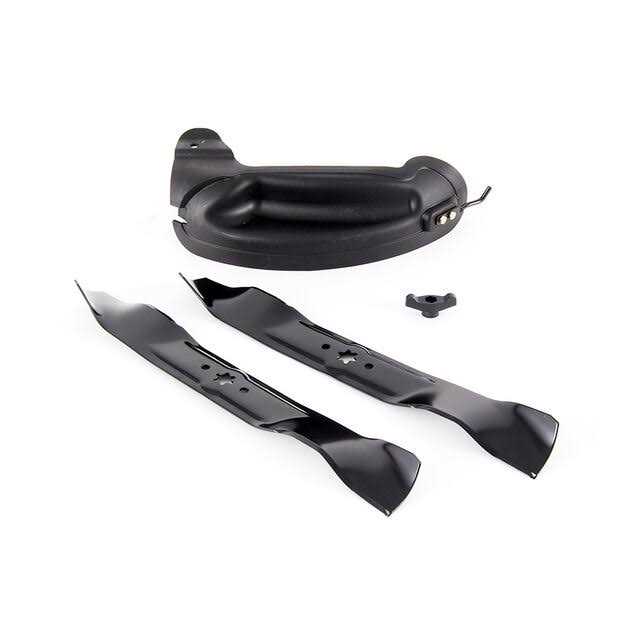 - Includes: 2 mulching blades, molded plug, mounting hardware and instructions
