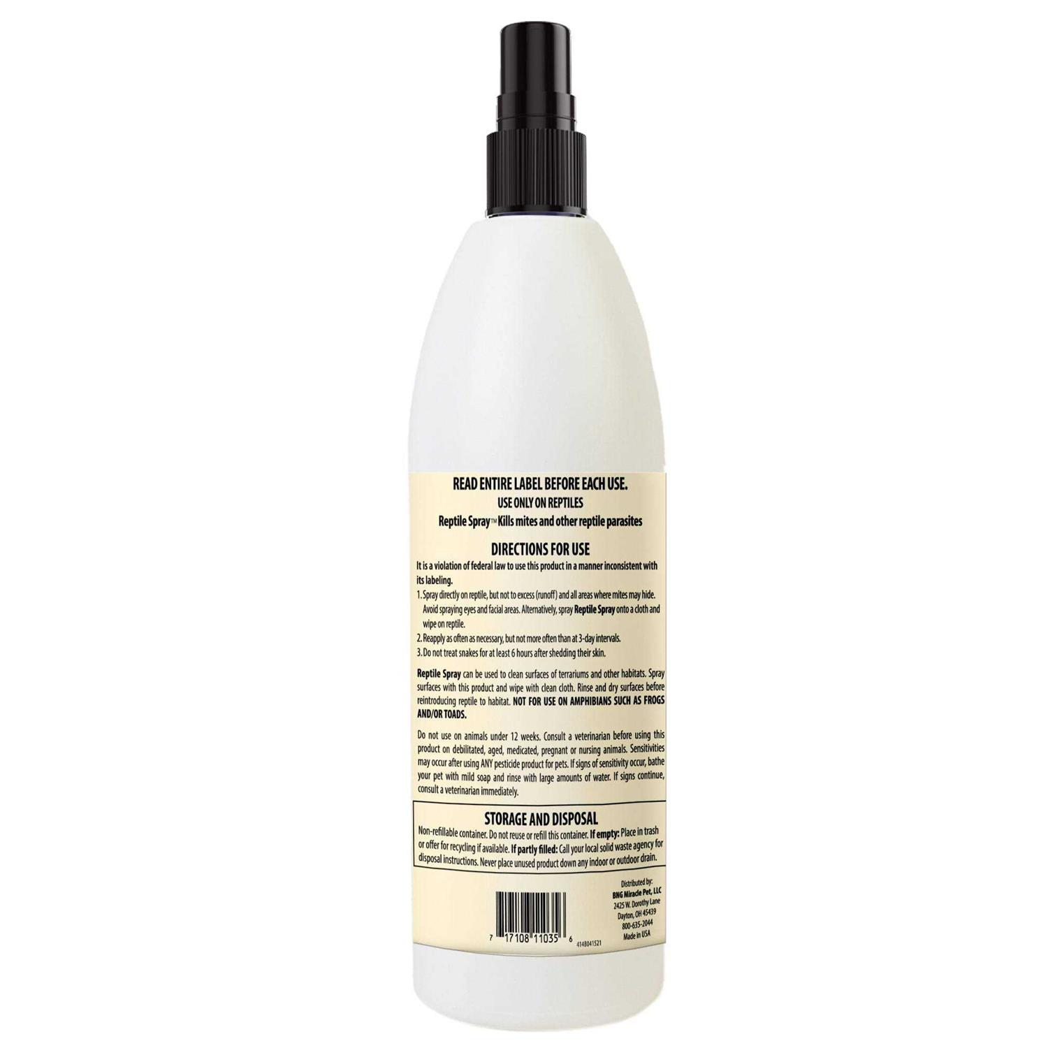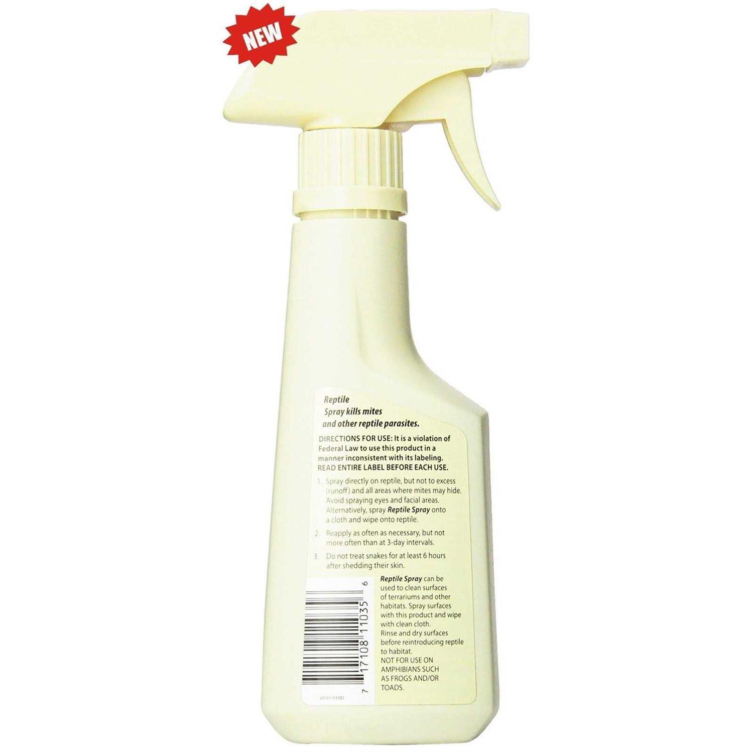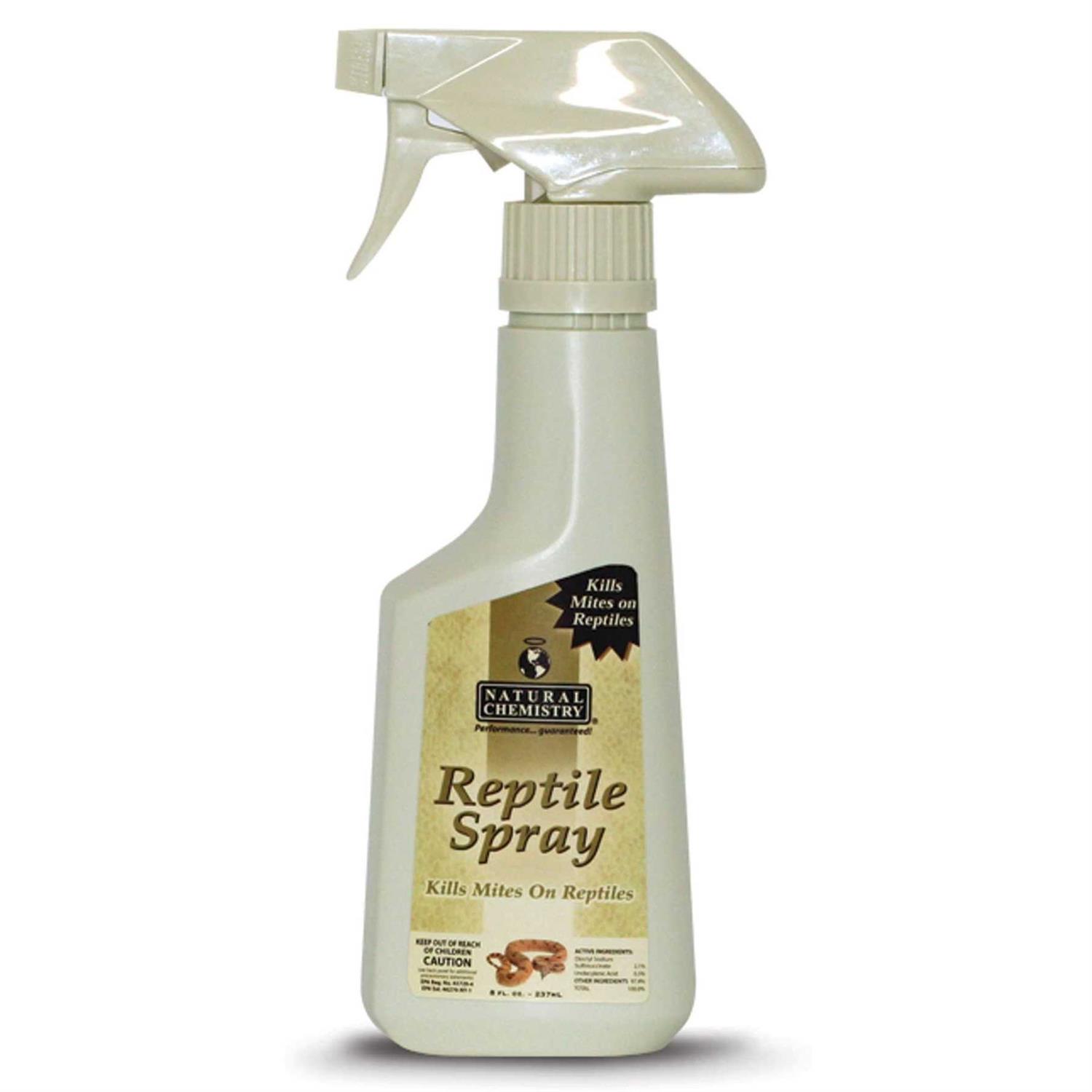 Natural Chemistry Miracle Care Reptile Mite Spray, 8-oz bottle; Help keep pesky mites off your scaly sidekick with Miracle Care’s Reptile Mite Spray. This liquid formula is made in the USA and designed to kill mites, lice and external parasites on contact. This powerful formula is safe to use directly on snakes, lizards and other reptiles. Use it to combat insects of all life stages, quickly and effectively eliminating them from your reptile and his environment. It can also be used to clean surfaces and substrate of terrariums, as needed!