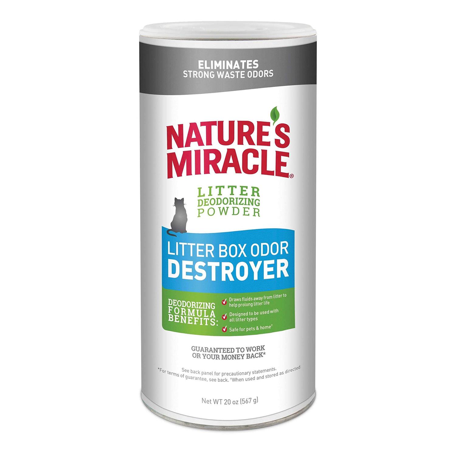 Natures Miracle pet stain and odor removers have been a trusted brand for pet mess cleanup for more than 30 years. With the expansion to training aids, cat litter, disinfectants and other products, Natures Miracle brand can be trusted to provide innovative solutions to a range of pet problems. Natures Miracle Just for Cats Litter Box Odor Destroyer Powder removes your cats strong waste and urine odors and draws away fluids to help prolong litter life. It is ideal for multi-cat and large cat homes. Natures Miracle Just for Cats Litter Box Odor Destroyer Powder helps keep your cats litter boxes clean. It is designed to be used with all litter types and can be added to both manual and automatic litter boxes. This product is safe for your pets and home, when used as directed. Trust the miracle when finding solutions for a clean home and a happy, healthy pet.