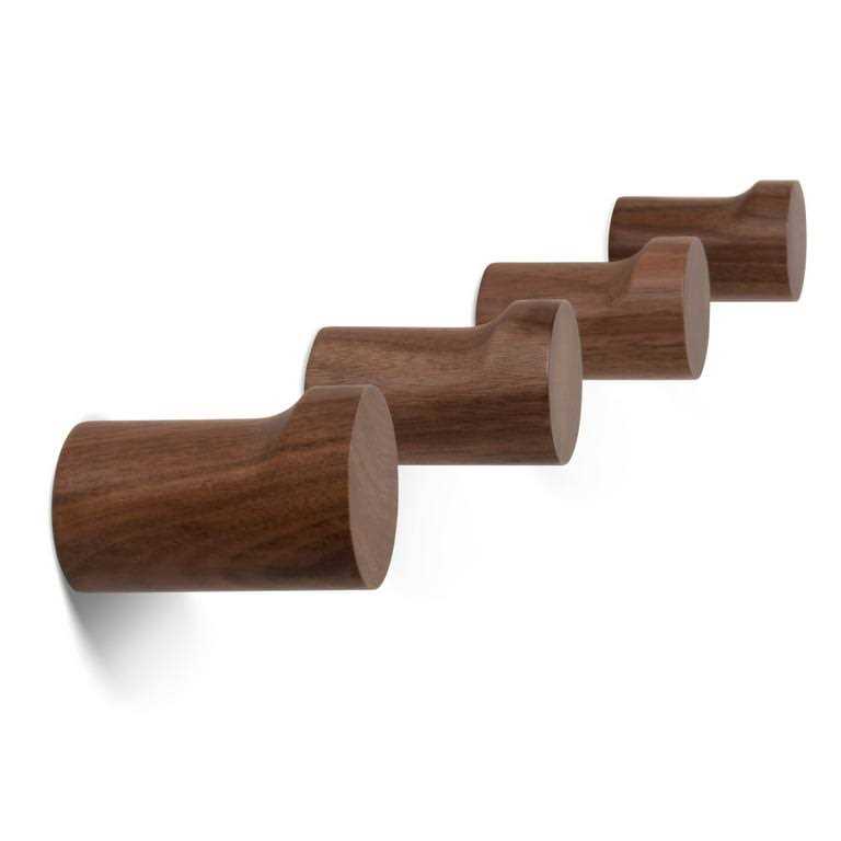 Naumoo Wood Wall Hooks, Pack of 4, Wooden Pegs for Hanging Coat, Hat, Purse (Black Walnut), Brown