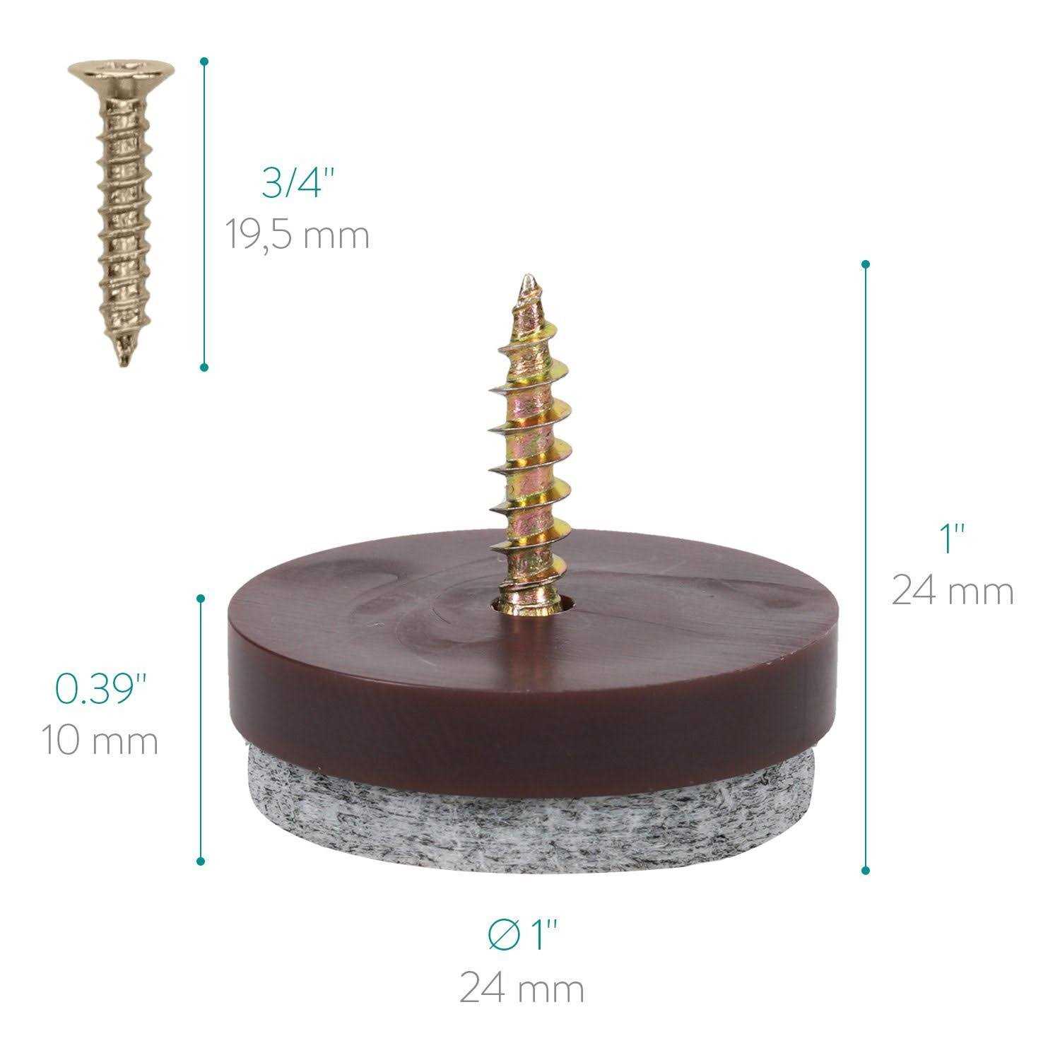 FLOOR PROTECTOR: Whether on oak parquet, cork or stone, the wool felt furniture sliders with fastening screws offer scratch protection to sensitive flooring surfaces. Chair legs or table legs slide softly without squeaks or scrapes. SUPERIOR HOLD: Screw the parquet glides into the chair, table, sofa or cabinet feet for long-lasting protection against floor damage. Unlike self-adhesive pads, they won’t slip to the side or leave sticky glue residues on wood, marble or PVC floors. HOW TO USE: First, using an electric drill, drill holes in the position you wish to place the pad. Once holes have been drilled, simply attach the felt gliders by using the screws provided in the set with a cordless screwdriver. BLACK OR BROWN: Each size felt pad comes in either black or brown. Giving you the option to choose the color and size which best suits your furniture. /b ul /ul /b Protect your home flooring with the screw-in felt furniture sliders from Navaris. Chair feet slide and glide smoothly without scratching or squeaking on your wooden, laminate or vinyl floors. ul /ul UNIVERSAL APPLICATION /b ul li /b The chair sliders with screws are suitable for all smooth or sensitive floors such as parquet, laminate, cork, hard wood, stone, tiles, marble or vinyl. /li /ul SECURE /b /b ul li To protect your floor, attach the round glides under chairs, armchairs, tables or other furniture. As there is no risk of the pads slipping to the sides due to br the screws, they remain discreetly in place without collecting dust or fluff or leaving glue marks. /li /ul CHOOSE YOUR COLOR /b /b ul li These felt slider pads come in both black or brown.