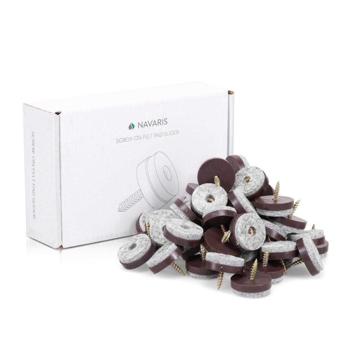 Navaris Felt Pads for Furniture (50 Pieces) – Round Screw-In Sliders for Chair Legs, Feet – Floor Gliders to Protect Hardwood – 1″, Brown