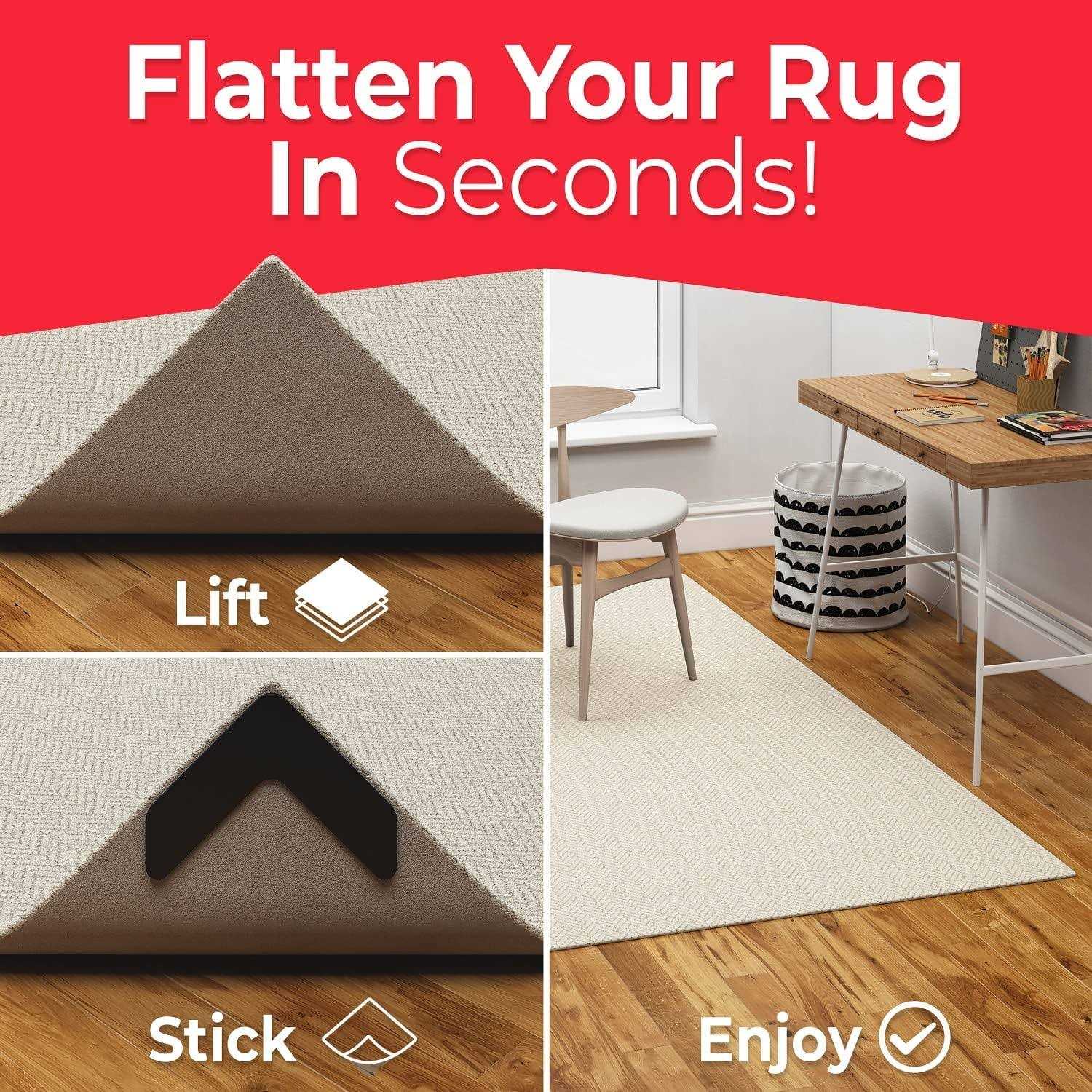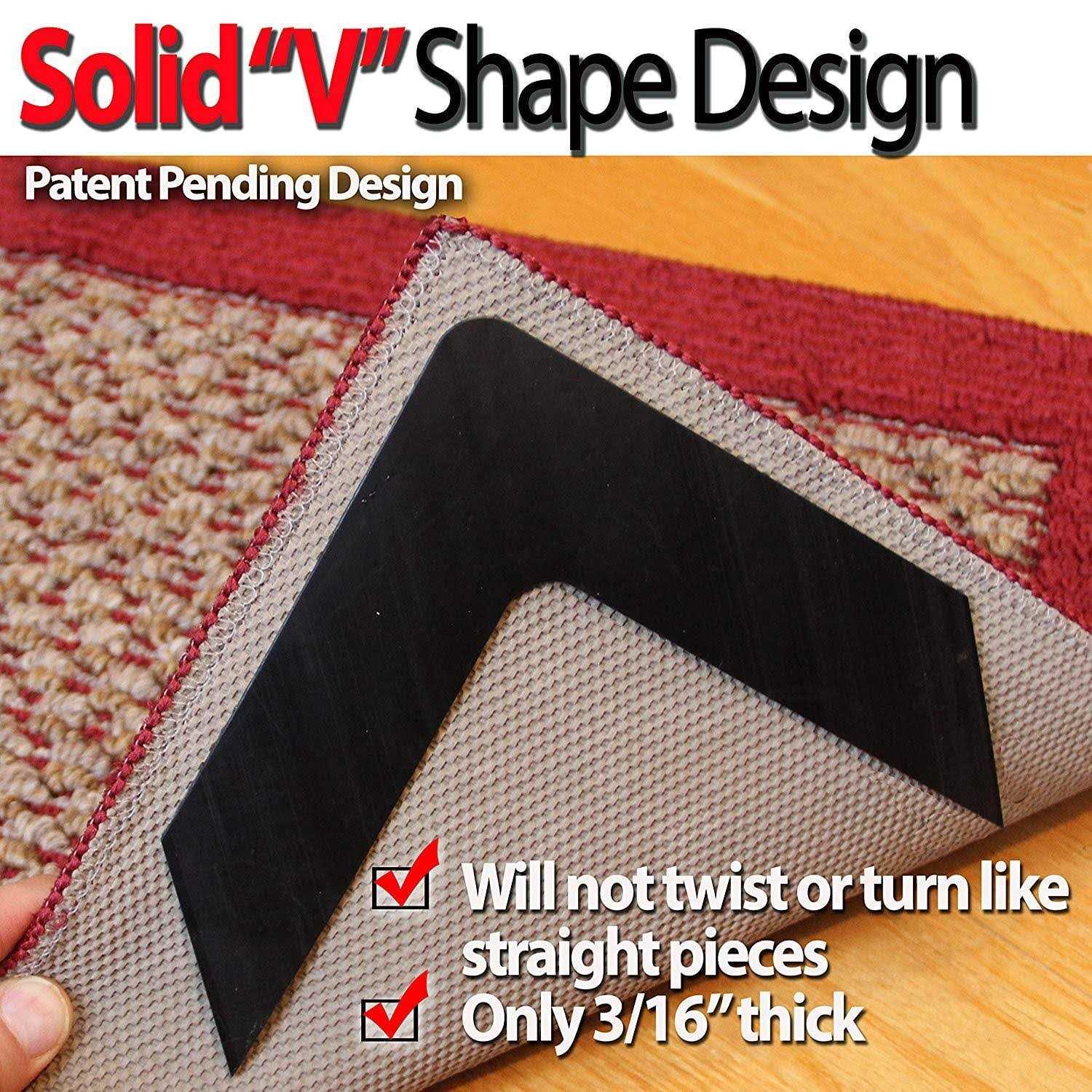 NeverCurl Best V Shape Design Rug Corner Gripper to Instantly Stops Corner Curling
