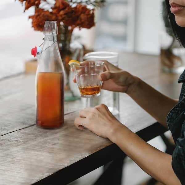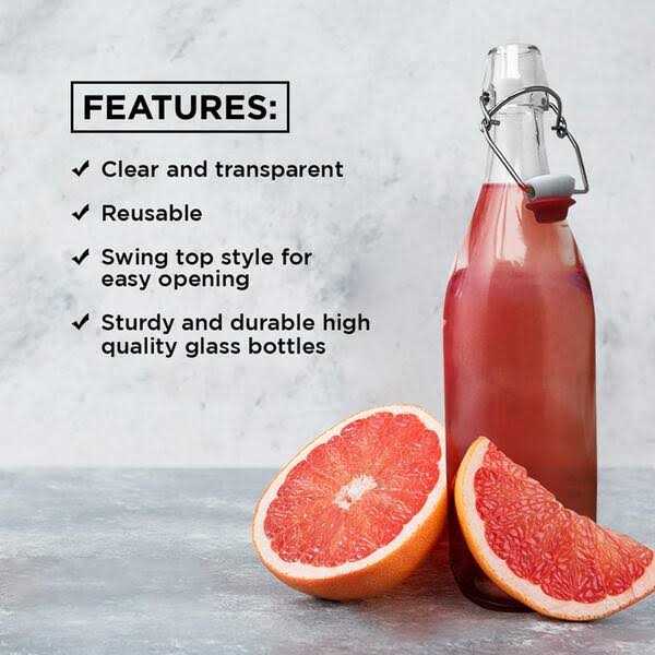 The rubber seals on the lids help create a secure seal to preserve the bottle’s contents. These 17 oz. narrow-neck bottles come with a funnel for effortless pouring and a brush for easy cleaning. The gold glass marker allows you to write on the glass surfaces and label the bottles. Color: Clear.