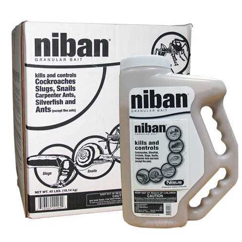 NIBAN Granular Insect Bait is a moisture-resistant bait that can be used indoors and outdoors to control ants, silverfish, roaches, crickets and more. Niban’s weatherized granules don’t degrade from heat or sunlight and will last through four inches of rain. Niban is the one bait that will continue to work because Niban has no known resistance and is virtually odorless. Niban eliminates the microoganisms in the insect’s stomach and blocks enzyme production causing starvation. And since it affects none of the insect’s major systems, they can’t develop resistance. Available Sizes: Niban 4 lb Shaker Niban 10 lb bag Niban 40 lb bag Great for DIY pest control!