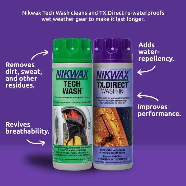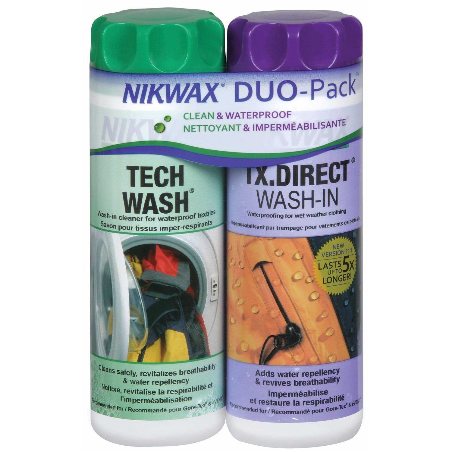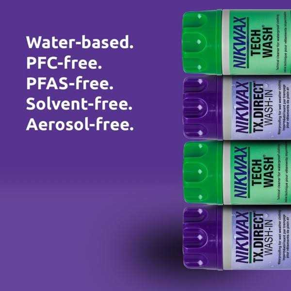 Tech Wash is a non-detergent, biodegradable liquid soap which removes dirt and detergent residues while leaving the water-repellent finish on waterproof clothing, equipment and sleeping bags intact. Nikwax TX Direct Wash-in adds water-repellency and revives breathability to your waterproof/breathable garments.