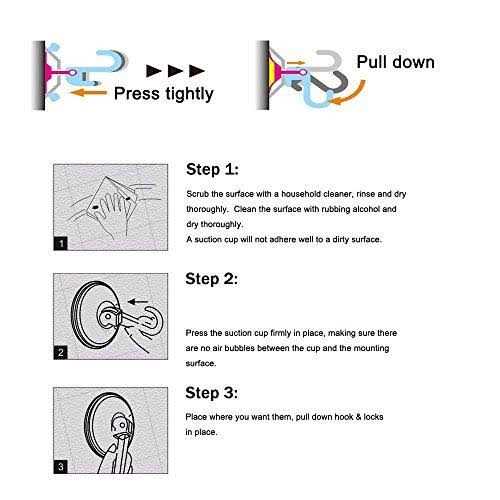 NL HOME Power Lock Suction Cup Hooks Includes 4 Suction-Cup Hooks Each One With 20 lb Capacity Non-Suitable Materials Natural Timber Wood Veneer Sheets Cracked Tile Mosaic Tile Imitation Brick Tile Unsealed Marble Painted wall Wallpaper Concrete Wall Instructions – Step One: Wipe Clean and Wipe Dry the Surface Before Use Scrub the surface with a household cleaner, rinse and dry thoroughly. Clean the surface with rubbing alcohol and dry thoroughly. A suction cup will not adhere well to a dirty surface. – Step Two: Press the suction cup firmly in place, making sure there are no air bubbles between the cup and the mounting surface. – Step Three: Place where you want them, pull down hook & locks in place. Only Sticks On Smooth, Flat Surfaces (glass, mirrors, and tiles)