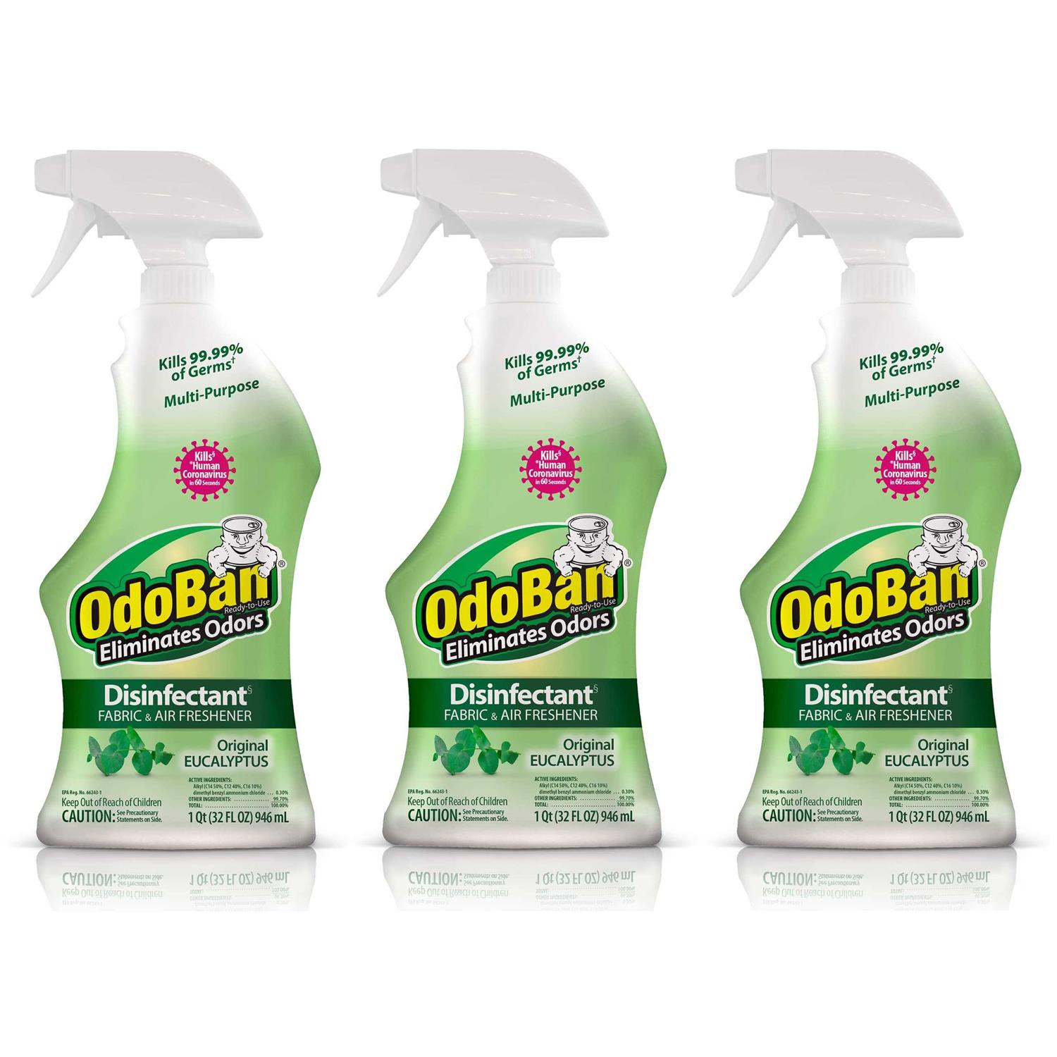 OdoBan Ready-to-Use Disinfectant and Odor Eliminator, Set of 3 Spray Bottles, 32 Ounces Each, Original Eucalyptus Scent