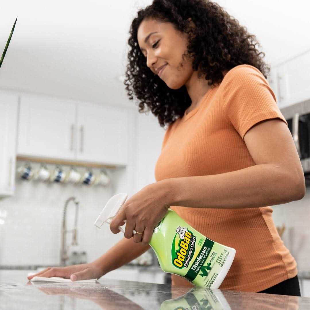 OdoBan Ready-to-Use multi-purpose formula spray does the job of many products in one. It’s an effective cleaner and sanitizer that leaves no residue, and works effortlessly to disinfect hard, nonporous household surfaces. It’s also an effective eliminator of harsh aromas and stenches including pet urine aftermath in carpet, upholstery, and more. It can even stand up to the smell of smoke and can be used in sinks, tubs, and for mopping floors and washing walls. Not only is it an exceptional cleaner, but it’s a great air freshener and will remove harsh smells from any room. It’s also a great way to refresh laundry and fabrics. OdoBan products can be used in both households and business facilities of all types including schools and day cares, hospitals, nursing homes, in ambulances, buses, and trains, in airplanes and taxis, in restaurants and cafeterias; pretty much any place where people commune. When used as directed, OdoBan is safe for use on washable surfaces, including sealed natural stone, stainless steel, ceramic, tile, Formica, fiberglass, rubber, vinyl, terrazzo, and plastic. Safe for use on sealed natural stone countertops and surfaces, like granite, quartz, marble, ceramic, and soapstone. Make Life Fresh with OdoBan.