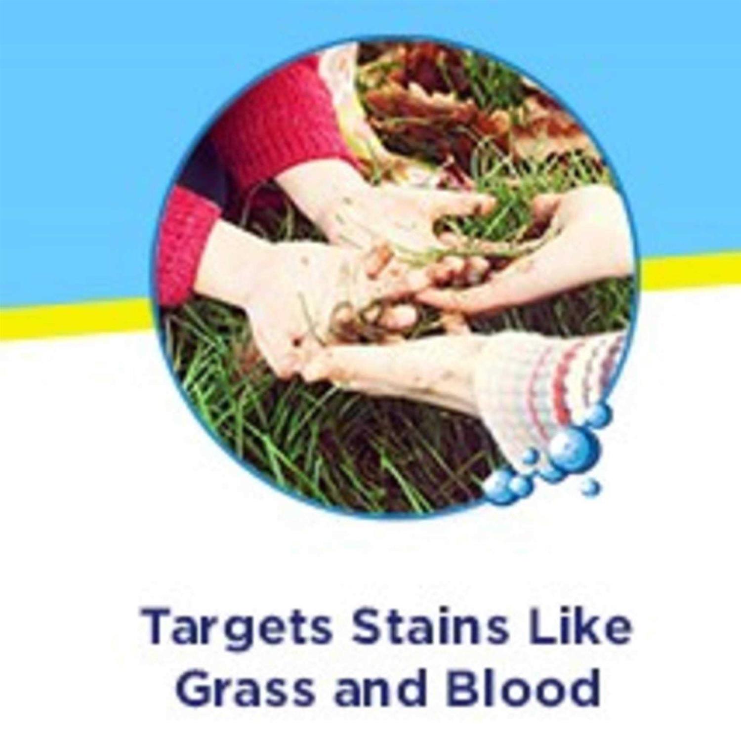 Food stain-lifting amylase enzymes. Oil-dissolving solvents. Grease and dirt-binding surfactants and polymers. Protein stain-targeting protease enzymes.