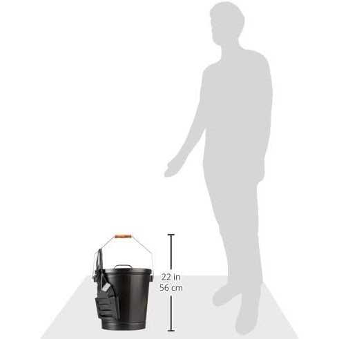 Keep your fireplace tidy and ash free with this metal ash bucket with shovel. The classic lines, black finish, and metal construction ensure this unit becomes a staple accessory on your fireplace. The generous bucket holds plenty of ash from past fires, and the included shovel makes cleanup simple. A specifically-designed pocket on the side of the bucket holds the shovel, for convenient storage, and the included lid keeps ash from spilling onto the floor. A sturdy metal handle offers an easy way to carry the item, and a wooden grip at the top keeps it comfortable. The matte black color blends with virtually any surrounding, and its traditional shape enhances your hearth. Clean your fireplace ashes and store them easily using this ash bucket with shovel.