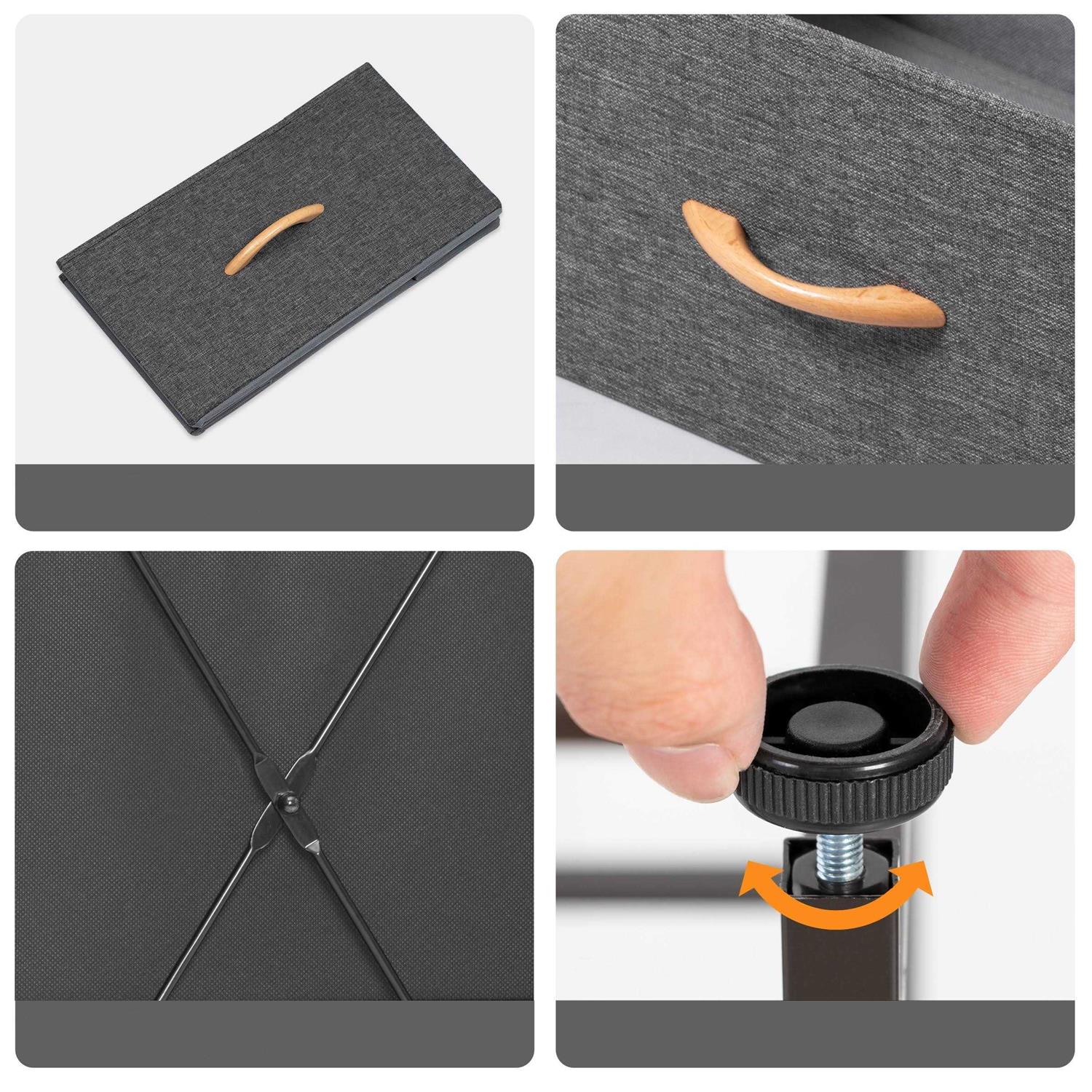 Maximize your storage space with the Pellebant 5 drawers vertical storage tower organizer. Its vertical design and narrow footprint make it perfect for small rooms. The five fabric drawers with wooden handles are removable and foldable, providing ample room for clothes and linens. The premium fabric drawers, sturdy metal frame, and waterproof wooden top offer a classic and simple decor. Features: Durable metal frame and MDF wooden top Five removable and foldable, easy-to-pull fabric drawers Four foot pads for floor protection and stability Large storage capacity Easy care – just wipe clean with a damp cloth and let it dry Easy assembly required Organizer unit for bedroom, closet, hallway, or entryway Dimensions: Overall dimension: 17.7 inches wide x 11.8 inches deep x 46.1 inches high Drawer dimensions: 15.7 inches long x 11 inches wide x 8.7 inches high Wooden top weight capacity: 33 pounds Each drawer weight capacity: 11 pounds Same series: 5 drawers: 38886714 / 38818746 6 drawers: 38818748 / 38777504 / 38886714 7 drawers: 38818745 / 38773076 8 drawers: 38772977 9 drawers: 38777503 / 38776654 / 38773106 Notes: Because the size of the product is measured manually, there may be errors Photo may slightly different from actual item in terms of color due to the lighting during photo shooting or the monitor’s display