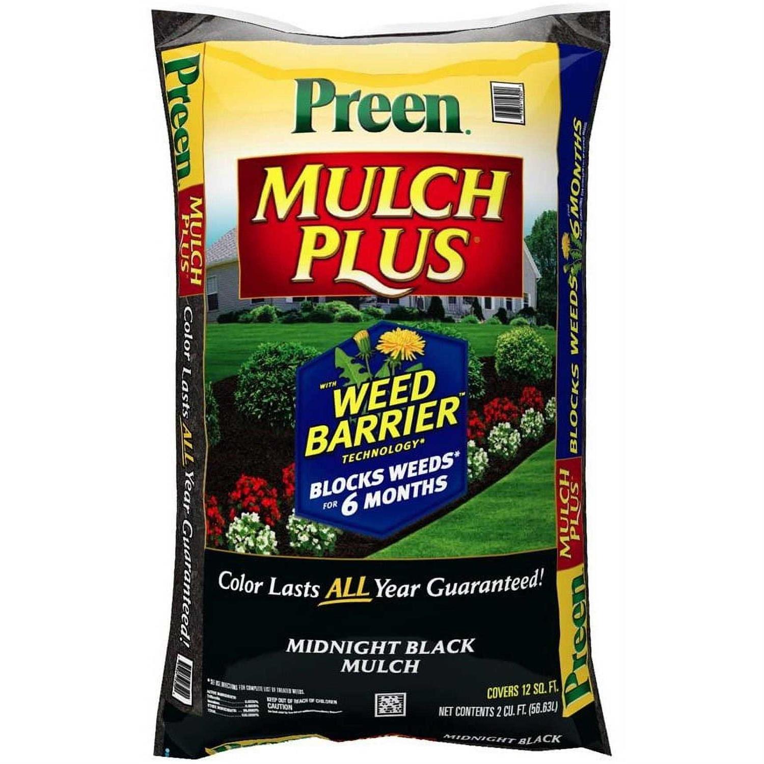 Preen 95456138 Mulch Plus with Barrier Weed Midnight Black 2 Cu. ft.