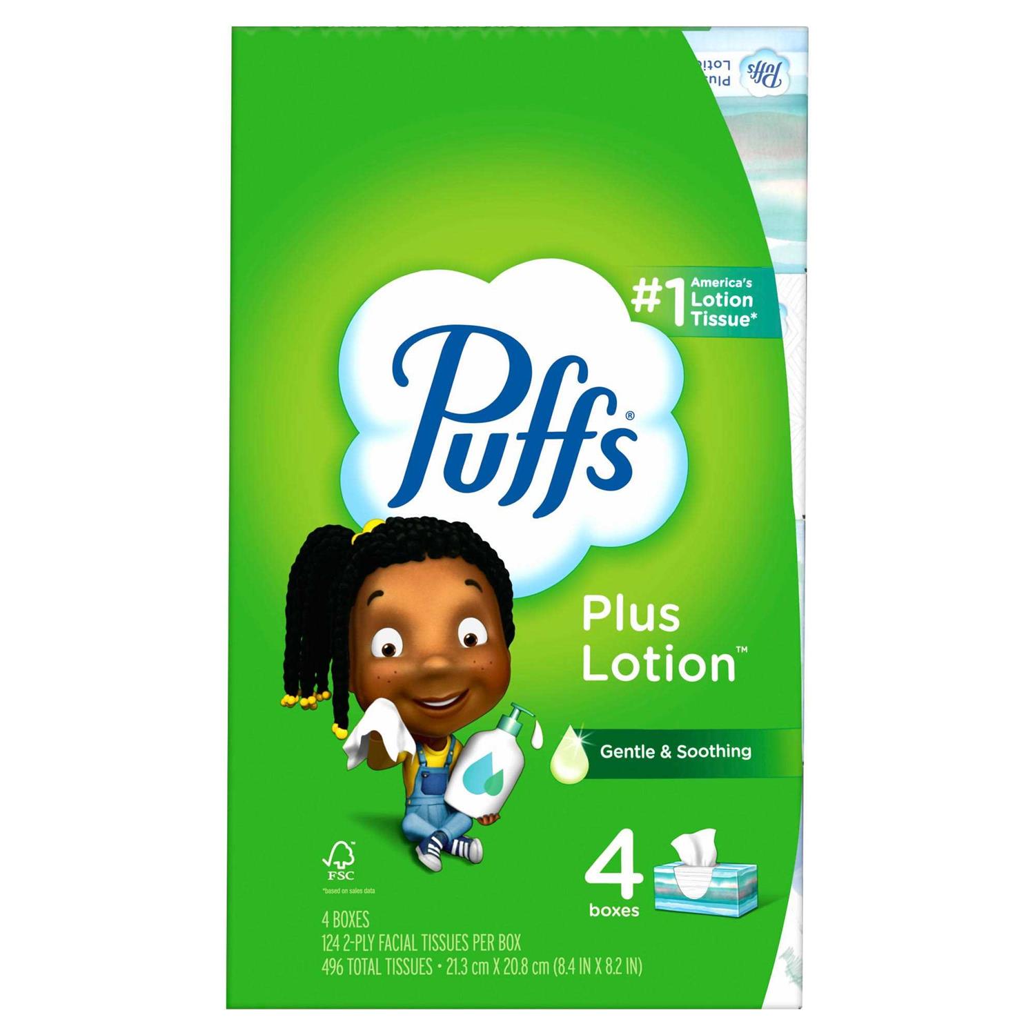 Puffs Facial Tissues Plus Lotion (4 Boxes)