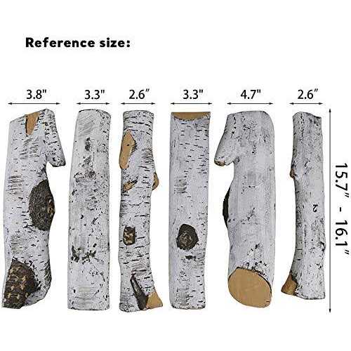 【PACKAGE】6pcs birch logs sets.【 DIMENSIONS】Each log is approximately 15.7-16.1 inches long x 2.6 to 4.7 inches in diameter. Large enough for your fireplace or fire pit 【PERFECT FOR FIREPLACE OR FIRE PIT】Perfect for vented gas fireplace, Outdoor & indoor gas fireplaces, direct vent, zero clearance, natural gas, gel, standard fire pits, fake fireplaces, electric fireplace inserts, vent free fireplaces, propane fireplaces, etc 【FAMILY SAFE FROM TOXIC FUMES】Real logs produce carbon dioxide,ash or residue into the air during burning, which is dangerous when the doors and windows are not ventilated in winter. These ceramic fiber gas logs burns clean, and does not pollute the air with ash, soot, debris or residue. They also cool quickly thus are very safe 【EXTREMELY REALISTIC】These ceramic fiber birch logs look just like real fireplace wood logs when they are in the fire. They are meticulously hand painted to re-create the look of natural wood, you will even see some orange/red hot spots under the logs while burning.【 COMPLEMENT PIECE】Can be used to complement current gas logs, crackle flame firelogs, fire starters, firelog, crackle flame firelogs, fire starters, Glowing Embers, and lava rocks. They won’t leave your fireplace looking bare 【DURABLE IN USE】Ceramic fire products reflect and store heat that is slowly released over time which can warm up the house. It can withstand the most extreme temperatures without damage or crumbling, making them a beautiful addition to your fire feature. – The highly durable ceramic fibers that construct each piece are ideal for indoor and outdoor use and can sustain temperatures up to 1,832 degrees Fahrenheit. But their design is also clever enough not to scratch or scuff the surface of the fireplace – i br /b /i – i Specifications /b /i : – ul li Material: Ceramic Fibers /li li Finish: Imitation of Wood Birch /li li Indoor or Outdoor Use: Indoor/Outdoor /li li Max Temperatures: Up 1,832 degrees Fahrenheit /li li Package Contents: 6 x Realistic Logs /li /ul p i br /b /i – i Features: /b /i – ul li Great for All Type of Fireplace – Vented gas fireplace, Outdoor gas fireplaces, indoor gas fireplaces, direct vent, zero clearance, natural gas, gel, standard fire pits, fake fireplaces, electric fireplace inserts, propane fireplaces, etc /li li Perfect for Fireplace or Fire-pit – Six life sized ceramic gas logs that won’t leave your fireplace looking bare /li li Creativity – Arrange your logs based on your needs. You receive 6 logs with different designs to allow you to use your creativity. Stack the logs in an orderly fashion or mimic nature by placing them at random /li li Extremely Realistic – These ceramic wood logs look just like real wood logs when they’re in the fire /li li Complement Piece – Can be used to complement current gas logs, crackle flame fire logs, fire starters, fire log, crackle flame fire logs, glowing embers, fire starters, and lava rocks /li li Family Safe from Toxic Fumes – Natural glow logs burn clean and do not release any ash or residue into the air like some lower quality fake fireplace logs /li /ul