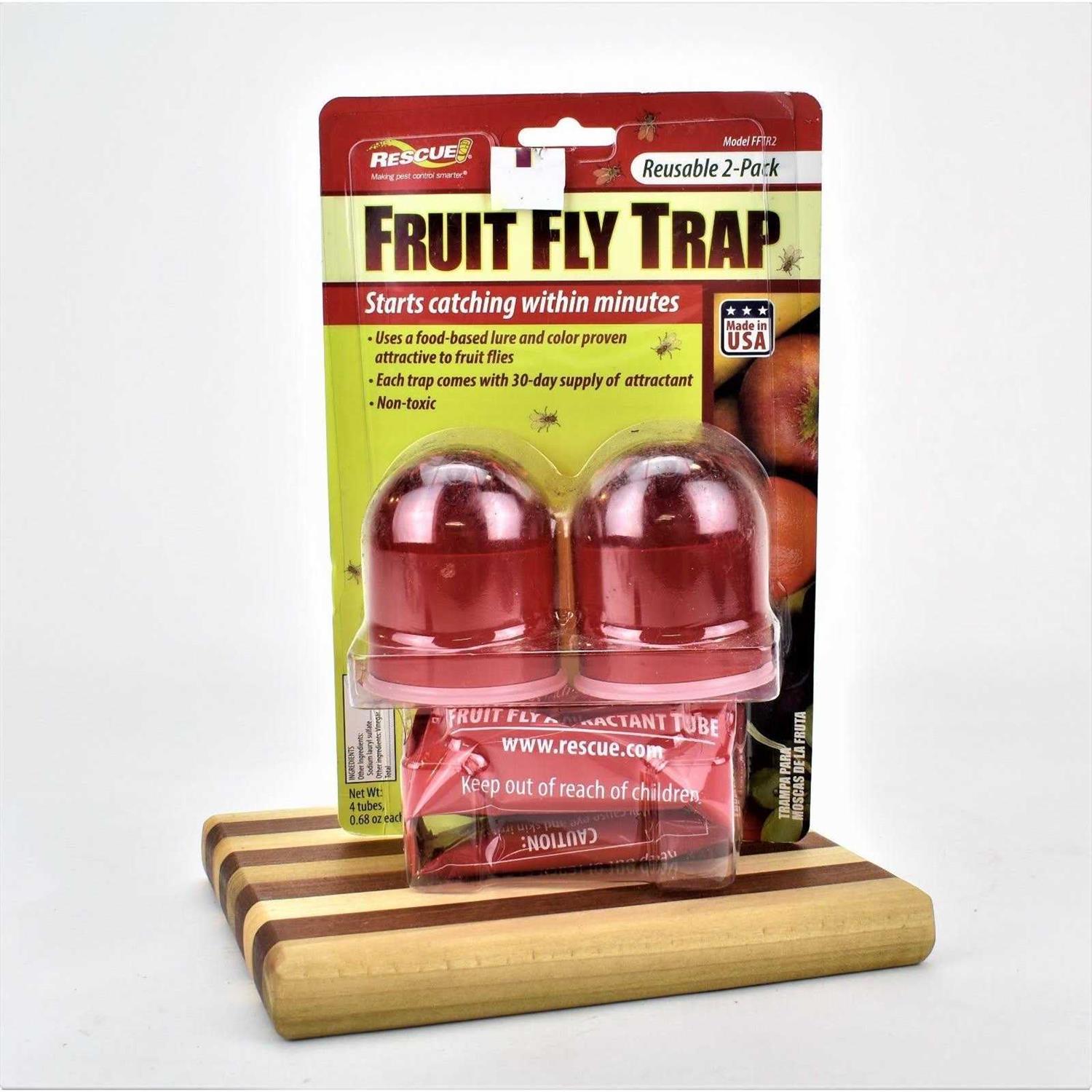 Our trap catches fruit flies that congregate and breed near fruit, vegetables and food scraps. This trap uses a food-based lure and color proven attractive to fruit flies. Simply add the liquid attractant to the trap and it starts catching fruit flies within minutes. Each trap comes with a 30-day supply of attractant and is reusable with rescue fruit fly trap attractant refills. With more holes and a higher concentration of attractant, our exclusive design is proven to catch adult fruit flies 8X better than competitive traps.