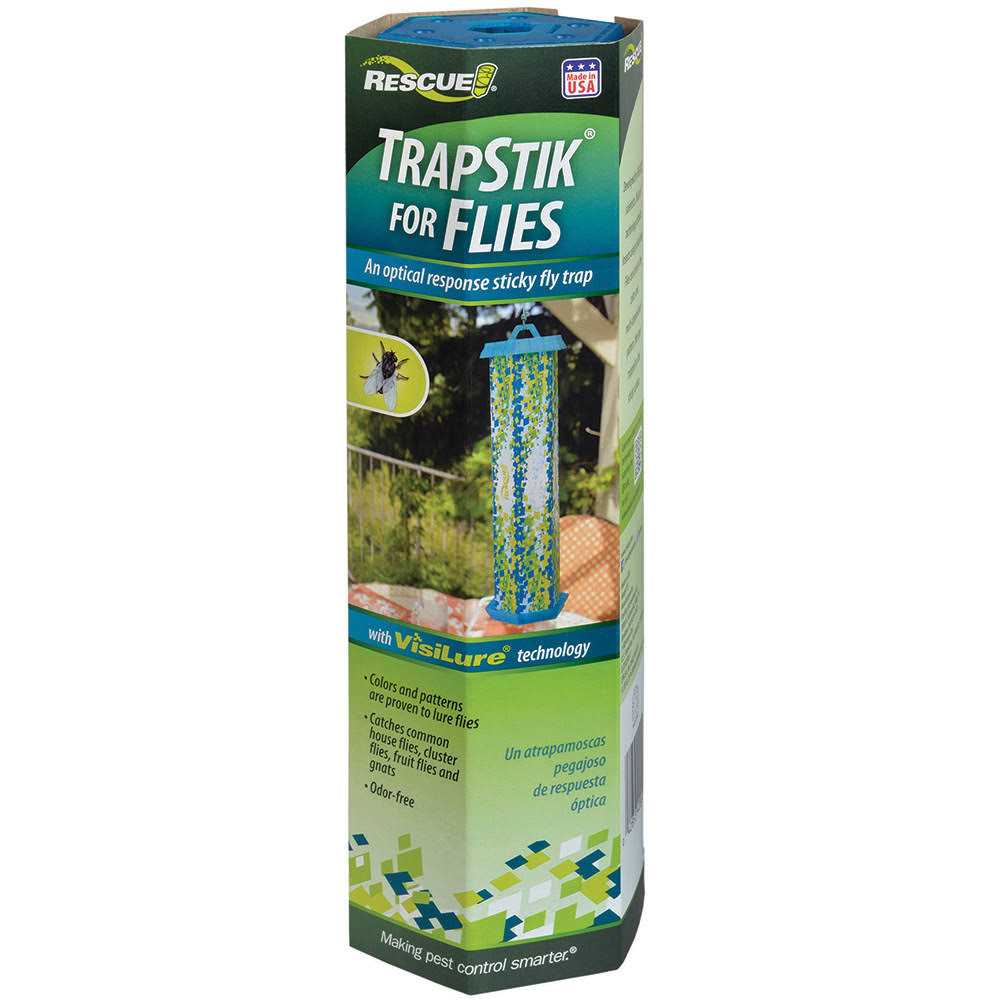 The RESCUE! TSF Non-Toxic TrapStik for Flies catches common house flies, cluster flies and fruit flies. It uses VisiLure technology to lure insects with appealing colors and a multi-dimensional pattern. Flies are attracted by the colors and patterns, then they get trapped on the sticky surface and eventually expire. Use anywhere around the house, or outdoors in a sheltered location protected from moisture. It’s best to hang it right where there’s a fly problem, such as around windows or in mud rooms and covered porches. RESCUE!’ s goal is to design, manufacture and market the safest, most effective pest control solutions available. Our products are the result of exhaustive and ongoing research and development, decades of experience and a commitment to solutions that respect the environment without sacriï¬cing results. Established in 1982, RESCUE! pest control products have never used poisons or toxicants to kill pest insects.